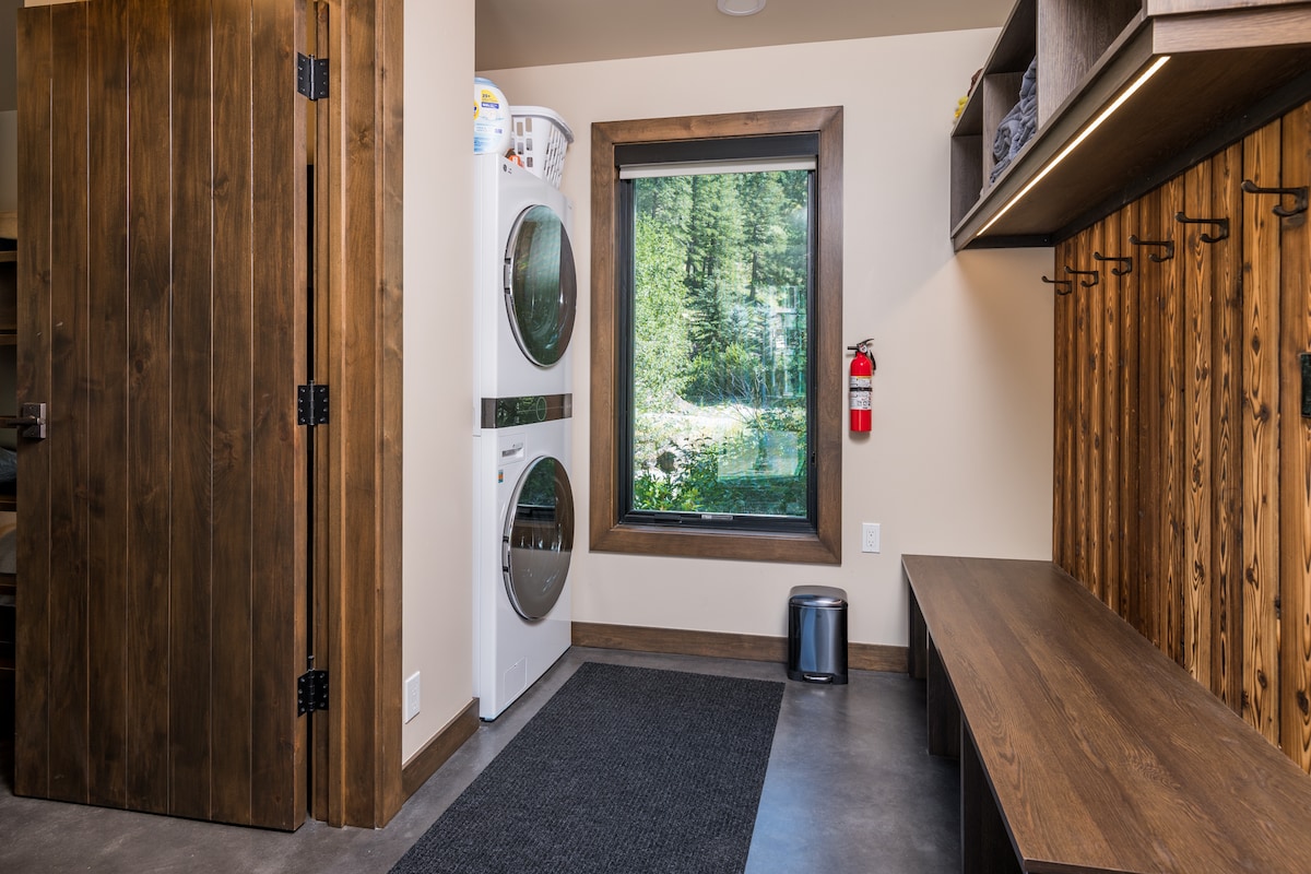 - Lóistíní ar cíos ina bhfuil meaisín níocháin agus triomadóir Ketchum