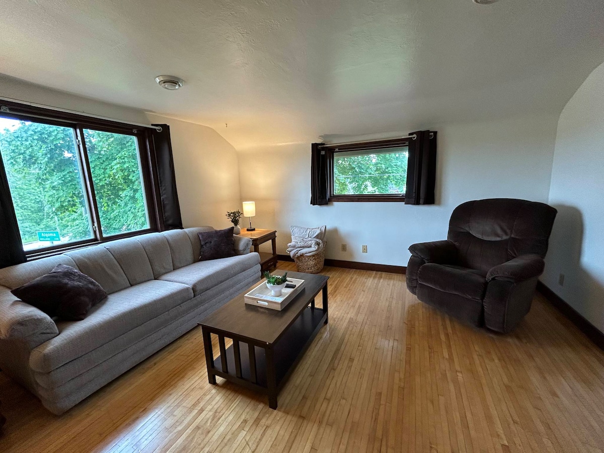 Beidh do theaghlach suite go lárnach díreach 5 mhíle ó dheas ó Door County agus 30 nóiméad go Green Bay. Bain sult as an gceantar go léir atá le tairiscint i mbaile fáilteach Algoma! Rinneadh athchóiriú nua ar an spás agus do chompord agus d'áisiúlacht san áireamh. Cibé acu an bhfuil tú ag tabhairt cuairte ar an gceantar le haghaidh iascaireachta, imeacht spóirt nó saoire ghearr cois locha, gheobhaidh tú gach rud a theastaíonn uait chun taitneamh a bhaint as d'fhanacht in NE Wisconsin.