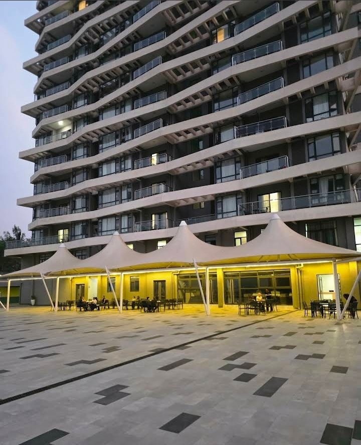 Faigh blaiseadh de Luxury ag Stiúideo Penthouse, Jabo Suites Fan ar stiúideo nua - aimseartha an 5ú hurlár ina bhfuil tobán folctha príobháideach lasmuigh ina bhfuil radhairc iontacha de chnoic Kigali. Bain sult as spás maireachtála chic ina bhfuil leaba bhanríona, teilifíseán 55 orlach, Netflix, Wi - Fi ardluais, agus cistinéad lánfheistithe. Lig do scíth ag linn snámha & Spórtlann na gcónaitheoirí amháin, bain leas as tís laethúil, slándáil 24/7, páirceáil saor in aisce. Foirfe le haghaidh gnó nó fóillíochta, cinntíonn an tearmann suaimhneach seo in Kibagabaga compord, áisiúlacht agus príobháideacht.