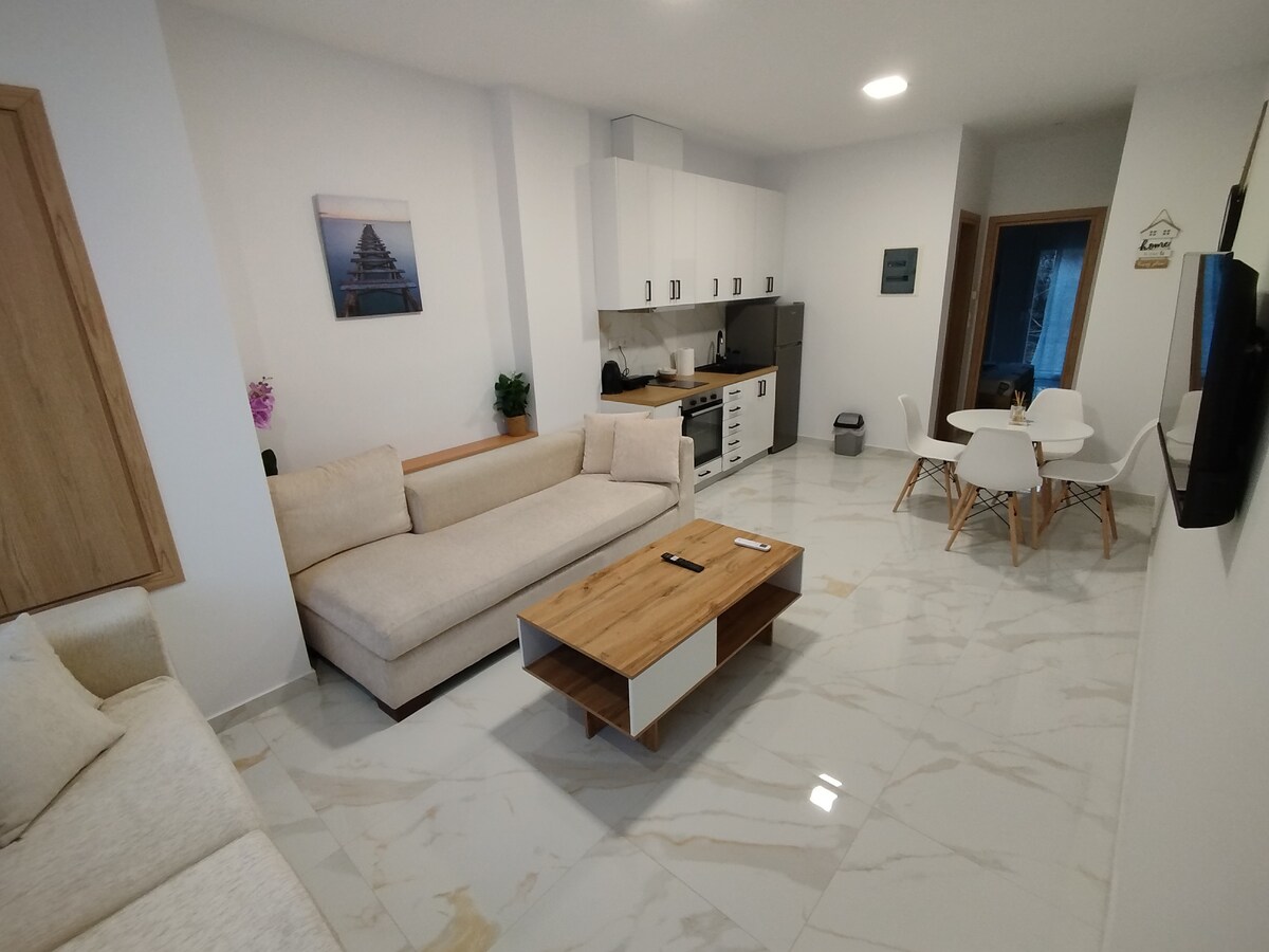 Peaceful 2-bedroom apartment with a lovely garden and a sofa bed for up to 2 people. A fully renovated (2024) and fully furnished house in the village of Krithia, Thessaloniki. Ideally located in the central square of Krithia village, just steps away from a supermarket, pharmacy, and the local general practitioner. Only 10 minutes by car (9 km) from Prokopidis military camp near Assiros — ideal for military personnel.