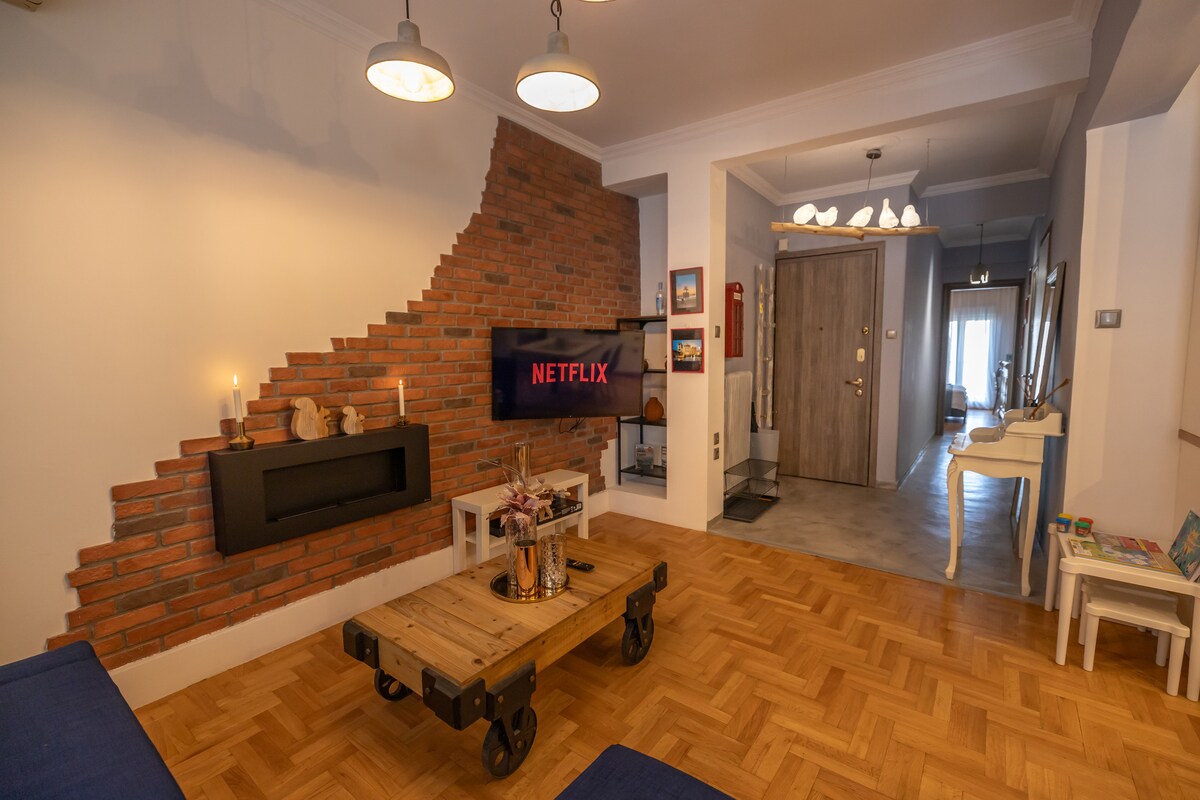 Our charming property in Thessaloniki's historic centre. The apartment has a living area with comfortable seating that is ideal for relaxing nights. A little balcony provides stunning views of the castle in the upper city. Also, the apartment has a fully functional kitchen, allowing you to prepare your own meals and enjoy them in the comfort of your own home. With a comfy double bed and lots of storage space for your stuff, the bedroom is warm and inviting.