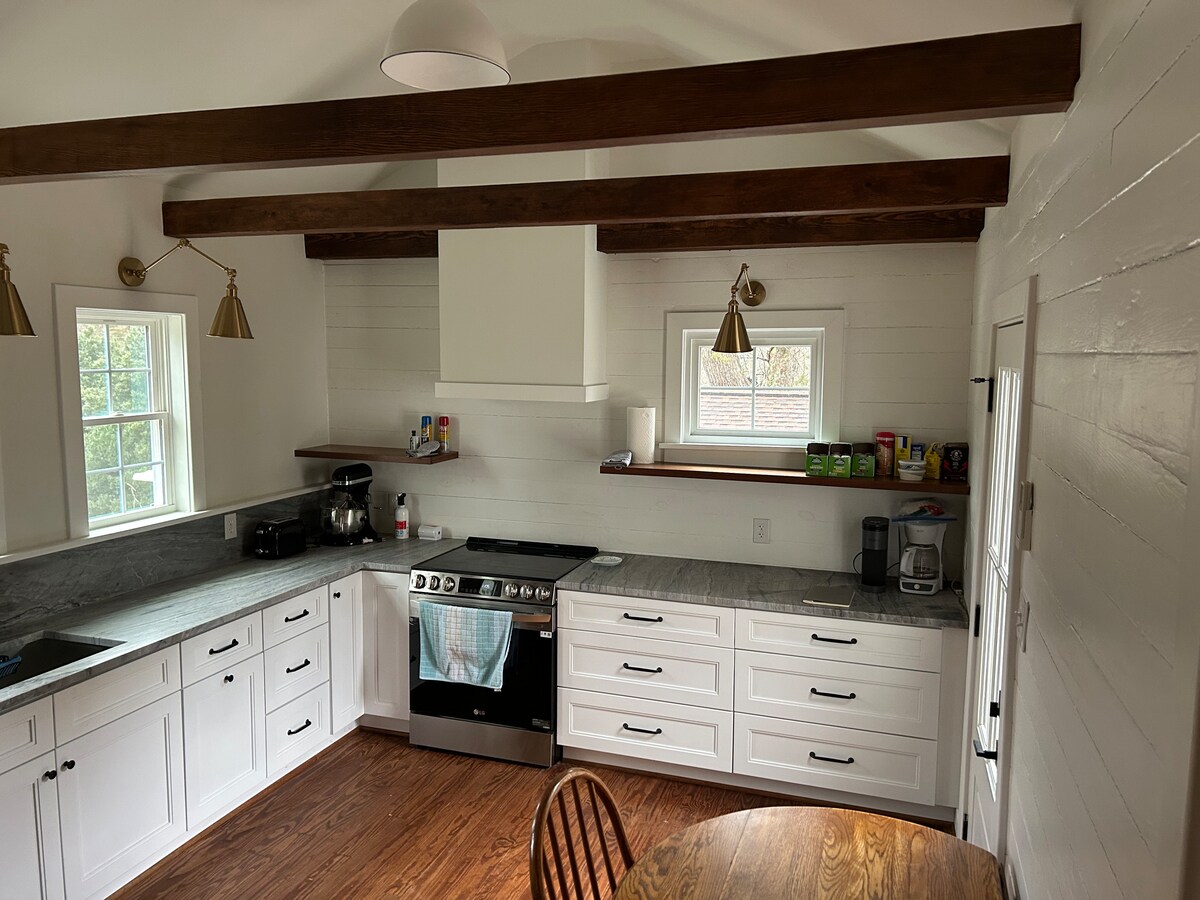 An bhfuil tú ag lorg saoire shíochánta le rochtain éasca ar an gcathair? Fáilte chuig Tearmann Theach na Feirme! Neadaithe sa tír, ach gan ach 20 nóiméad ó lár Richmond, 15 nóiméad ón aerfort, agus díreach 8 nóiméad ó shiopaí áitiúla. Bain sult as leaba theolaí de mhéid na Banríona, tolg codlata, teallach, beár caife, cuisneoir, aer/teas lárnach, Wi - Fi gasta tintrí, agus teilifís sruthaithe, agus ritheann siad go léir ar fhuinneamh in - athnuaite 100%. Foirfe do thaisteal gnó, do shaoirí gearra ag an deireadh seachtaine, nó do theaghlach agus do chairde. Tá do thearmann tíre foirfe ag fanacht leat!