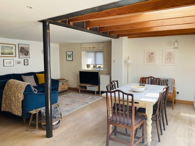 Is teachín 300 bliain d'aois é Blackberry Cottage atá athchóirithe go grámhar againn i dteachín álainn le haghaidh maireachtáil nua - aimseartha. Tá na spásanna éadrom agus aerach, tá an chistin ag tabhairt aghaidh ó dheas agus tá doirse galánta ag dul amach go dtí an paitió agus an gairdín, rud a fhágann go bhfuil an taobh amuigh ann. Tá teachín sméar dubh ar fáil ar bhonn seachtainiúil le linn laethanta saoire na scoile agus lá athraithe ina Aoine. Lasmuigh de laethanta saoire scoile tá an teachín ar fáil le haghaidh tréimhsí fanachta íosta 3 oíche le haghaidh do shaoire fhoirfe cois farraige.