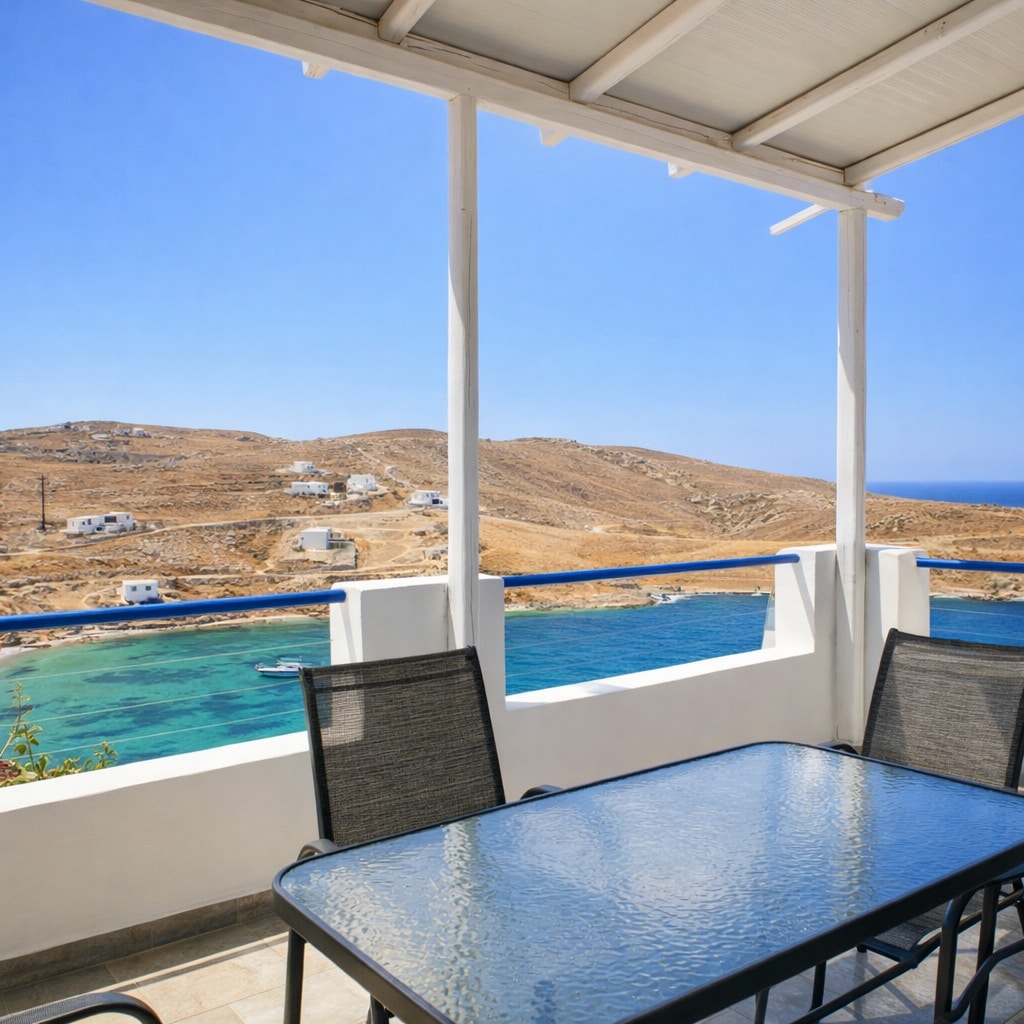 Neadaithe díreach os comhair na farraige agus díreach céimeanna ó Loutra Beach in Kythnos - áit a bhfuil spriongaí teirmeacha mar chuid den chladach - cuireann an tearmann seo radhairc scuabtha ar fáil ar an Muir Aeigéach. Téigh isteach sa bhalcóin chun dul ar maos i dtírdhreach suaimhneach an chósta le caife nó gloine fíona. Tugann spaisteoireacht ghearr chuig tithe tábhairne traidisiúnta, caiféanna gleoite agus margaí áitiúla éagsúla thú, le haghaidh eispéireas barántúil Ciocláidéiseach. Wi - Fi saor in aisce agus páirceáil ar an tsráid.