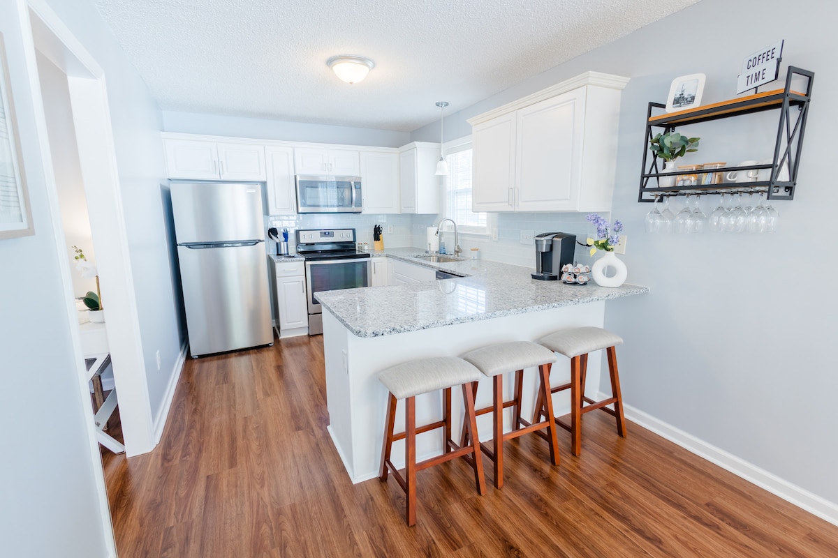 Árasán 2 sheomra leapa atá athchóirithe go hálainn le cistin iomlán ina bhfuil earraí cócaireachta ceirmeacha agus na huirlisí go léir a gheofá sa bhaile. Timfhilleadh ar an tolg i mblaincéad caith agus cuir ar scannán é lenár 50" Roku TV a ligeann duit do rogha ar fad a shruthú. Nuair a bhíonn sé in am don leaba, déan do bhealach chuig ceann de dhá leaba ar mhéid banríona le cúr cuimhne fuaraithe tae glas agus línéadach bán briosc. Ar maidin, múscail agus preab do ríomhaire ar oscailt ar cheann dár deasca, tá sé in am a bheith ag obair - nó nach bhfuil!;)