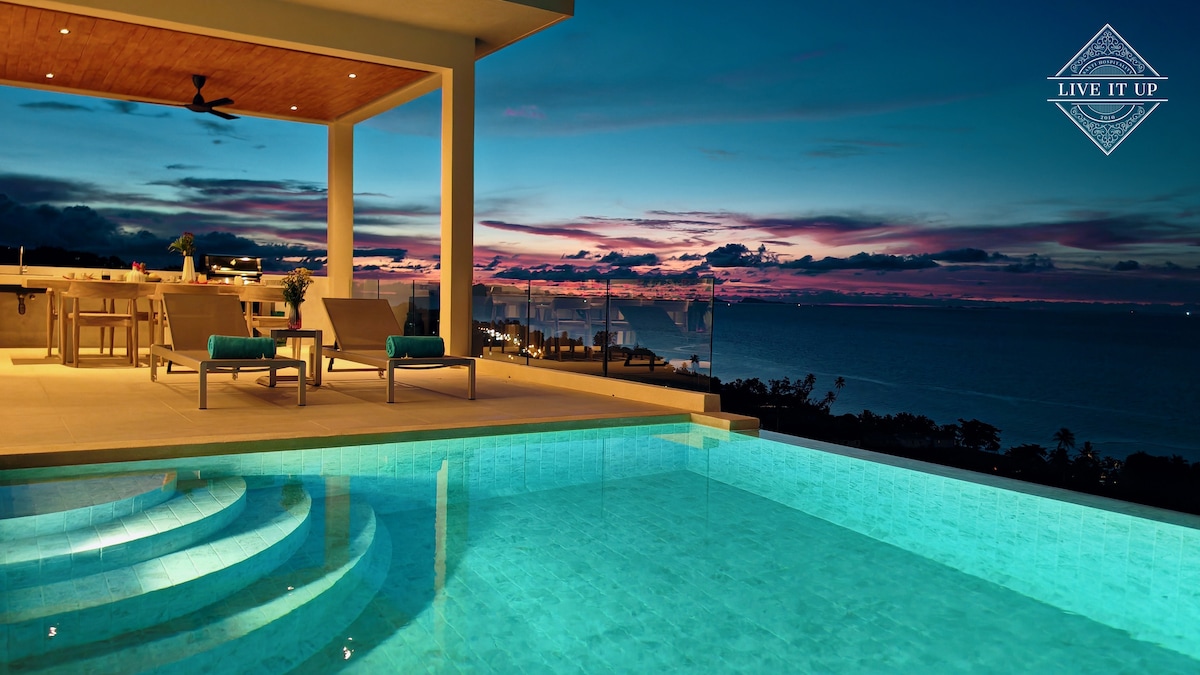 Nouvelle villa d'architecte , à quelques minutes du centre ville de Lamai, des plages et des restaurants. Vous apprécierez sa vue époustouflante sur le lagon de toutes les chambres et son équipement moderne. Ce logement est parfait pour tous ceux qui veulent se détendre avec une piscine à débordement xxl et ceci dans la plus stricte intimité .