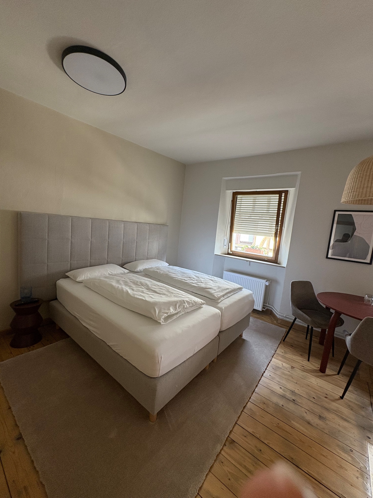 Unsere ruhig gelegenen Komfort-Zimmer bieten moderne, stilvolle Einrichtung mit komfortablem Bett, geräumigem Kleiderschrank und funktionalem Schreibtisch. Für Unterhaltung sorgt ein Flachbildfernseher mit Sat-TV, der französische Balkon bietet frische Luft und Ausblick. Das Bad verfügt über ebenerdige Dusche, WC und Föhn. Allergikerfreundlich, keine Haustiere. Kostenloses WLAN in allen Bereichen.