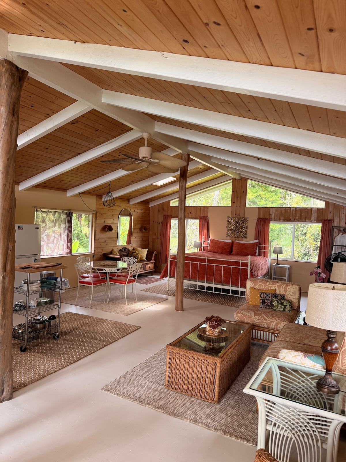 Is 2 BD/2BA compordach é seo le maisiúchán nua - aimseartha agus eicléictiúil tuathúil, atá suite ar acra príobháideach álainn de ghlasra méith. Is cistin choincheapa oscailte & seomra suí é an áit suí ina bhfuil fuinneoga móra ó urlár go síleáil a thaispeánann radhairc de Mauna Kea cáiliúil. Tá leaba úrnua Avocado cal - king sa phríomhsheomra leapa ar mhéid fial agus tá banríon theolaí ar fáil sa dara seomra leapa. Le cistin agus saoráidí atá feistithe go hiomlán, is bonn baile foirfe é seo chun tús a chur le d'eispéireas ar an Oileán Mór nó chun leanúint leis!