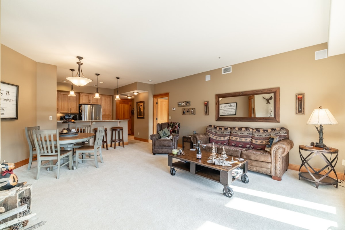Éalaigh go dtí an árasán galánta boho - chic seo i gceantar bríomhar Riverstone Coeur d'Alene, díreach céimeanna ó bhia den scoth, siopadóireacht agus eachtraí lasmuigh. Neadaithe feadh Abhainn álainn Spokane, cuireann an tearmann nua - aimseartha dhá sheomra leapa seo dearadh tionsclaíoch - chic, feistis phluise, agus fuinneoga ó urlár go síleáil ar fáil a thuileann an spás le solas nádúrtha. Foirfe le haghaidh saoire rómánsúil, saoire teaghlaigh, nó saoire deireadh seachtaine, compord, stíl agus áisiúlacht eispéiris in aon fhanacht iontach amháin