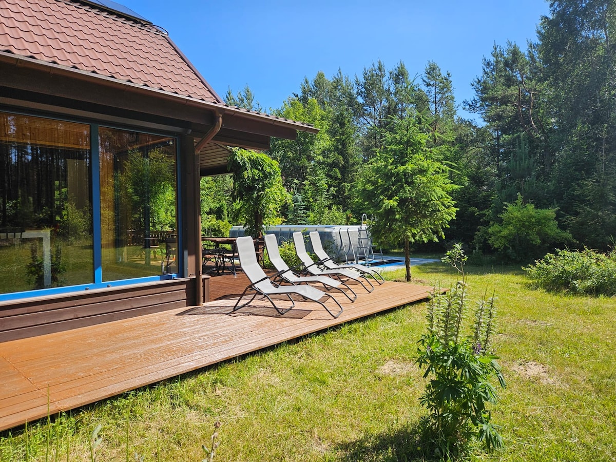 Ár dTeachíní NATURAlly is gaire don dúlra. Díreach in aice leis an bhforaois, cúpla céim ó dhá loch, i gcroílár Kociewia, i gcomharsanacht Kashubia …. Tá plota fairsing fálaithe de 1400 m2 i dteach AONAIR adhmaid go díreach ar an loch. Ciallaíonn sé sin go leor spáis le haghaidh scíthe neamhshrianta. Tá foraoisí timpeall an cheantair, agus níl ach cúpla céim ar shiúl ó dhá loch. Mar sin, is féidir leat siúl, snámh, iasc, grian nó taitneamh a bhaint as an leisce blissful.