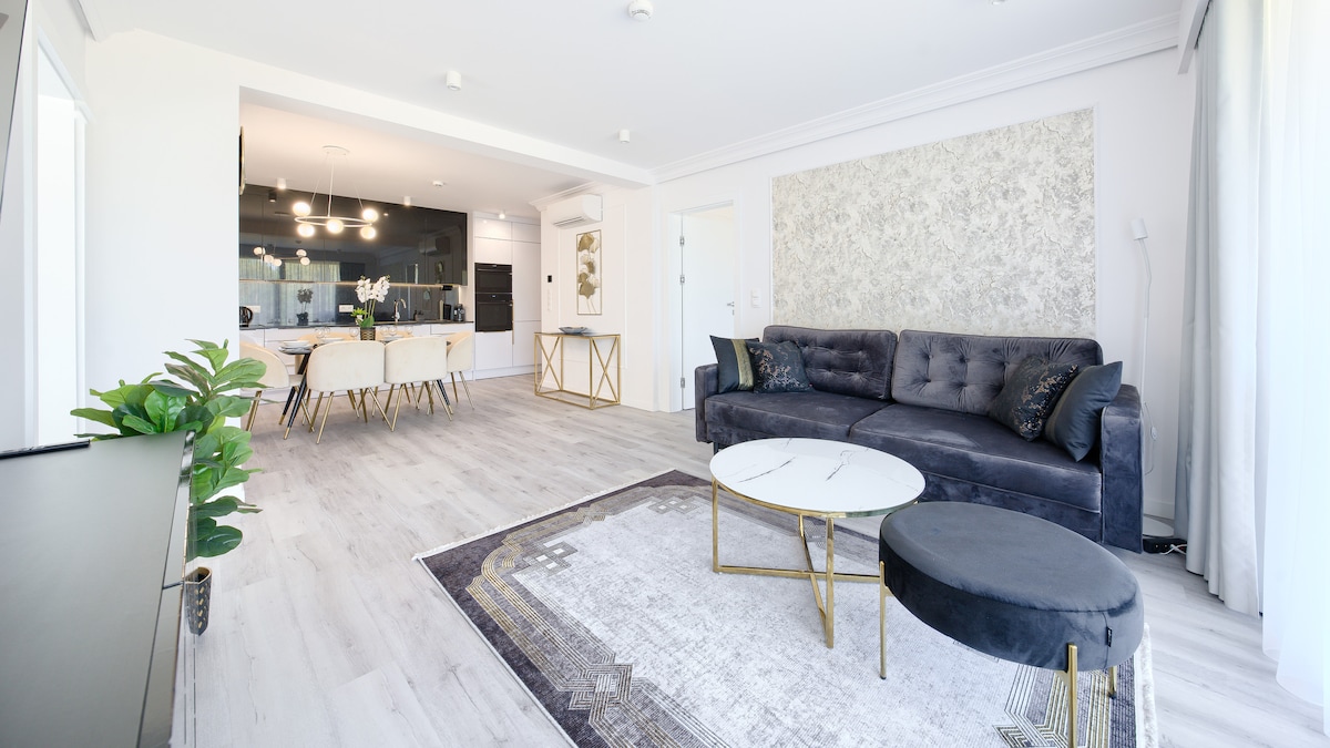 A modern apartment with a separate bedroom and a balcony offers a cozy, calm space ideal for relaxing after a day in the city or at work. The functional layout, fully equipped kitchen and fast Wi-Fi ensure a smooth, comfortable stay, even for longer visits. Soft greens, beige and natural wood create a harmonious atmosphere perfect for unwinding. Its excellent location — minutes from the center and close to the train station — makes it a great base for exploring Koszalin.