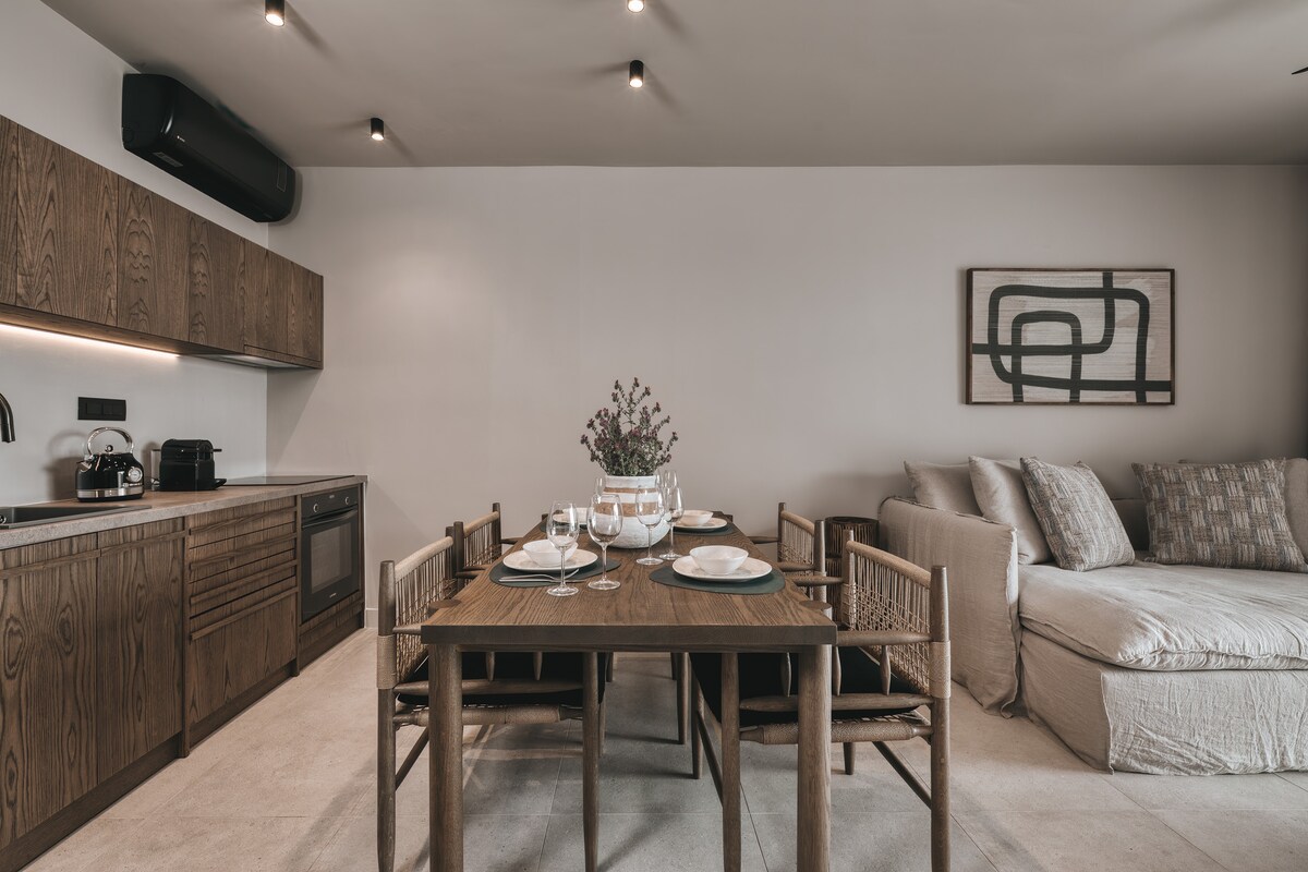 Neadaithe i measc crann olóige, níl inár villa cloiche nua - aimseartha ach tiomáint 5 nóiméad ó shráidbhaile gleoite Agios Nikolaos agus 300 méadar ón trá. Le 5 sheomra leapa (2 sheomra le seomraí folctha ensuite), 4 sheomra folctha, agus leithreas, freastalaíonn sé go compordach ar theaghlaigh. Tá balcóiní le feiceáil i ngach seomra, agus tá an chistin lánfheistithe agus an tábla bia fairsing do 10 gcinn. Bain sult as roghanna téimh agus fuaraithe, áit pháirceála mhór, agus meascán dearadh nua - aimseartha agus traidisiúnta fáilteach. Tá do thearmann foirfe ag fanacht leat!