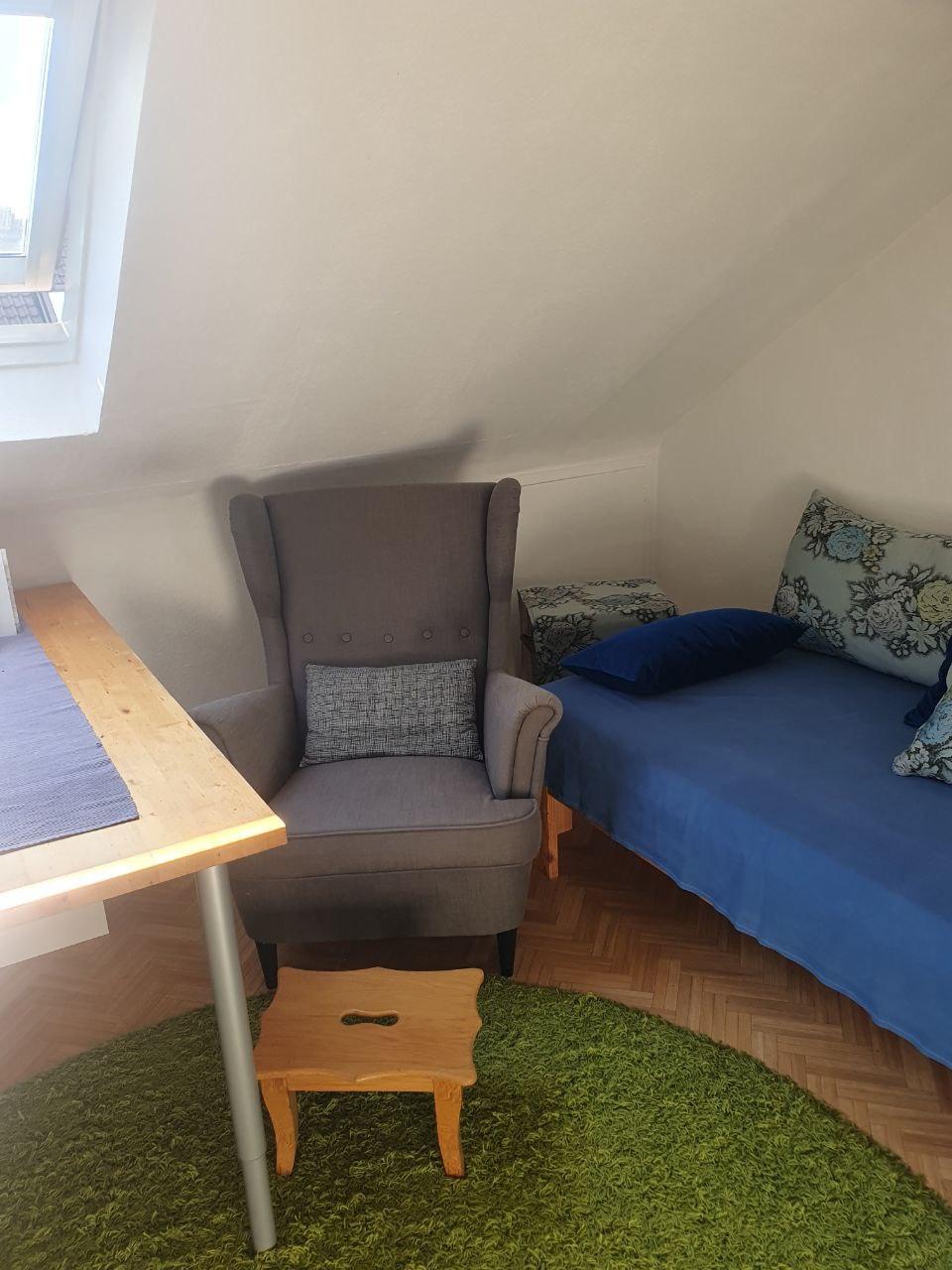 Ligim árasán mo mhic ar cíos, atá ina chónaí thar lear anois. Tá sé oiriúnach do 1 -2 dhuine agus tá sé suite in Handschuhheim, ceantar álainn Heidelberg. Tá dhá sheomra san árasán, seomra suí (leaba shingil agus leaba thoilg) ina bhfuil spás mór oibre, seomra ina bhfuil cistin, seomra cithfholcadáin agus leithreas ar leith. Tá sé thart ar 3 nóiméad. chuig iompar poiblí agus leis an tram is féidir leat lár na cathrach nó an príomhstáisiún traenach a bhaint amach i 10 nóiméad ar thram.