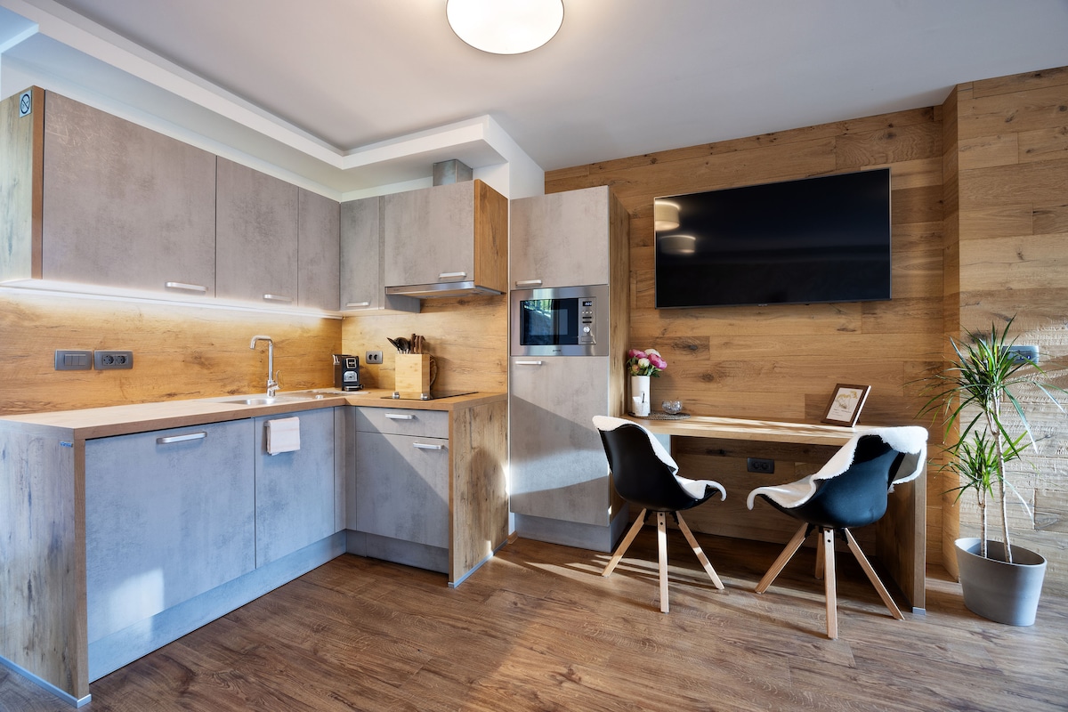 Sa sabhna le lánléargas iontach sléibhe, is féidir leat do scíth a ligean agus taitneamh a bhaint as na radhairc iontacha ar an mbalcóin mhór ar throscán fuarlaigh. San árasán 2 sheomra, gheobhaidh tú é go léir le haghaidh saoire fhoirfe. Biachlár blasta i gcistin ardchaighdeáin Miele agus bain sult as braon maith fíona os comhair an teallaigh. Is féidir leat oíche mhaith chodlata a fháil sa leaba dhúbailte fíor - adhmaid le tochtanna ardchaighdeáin. Má tá áit chiúin á lorg agat, is é seo an áit le fanacht!