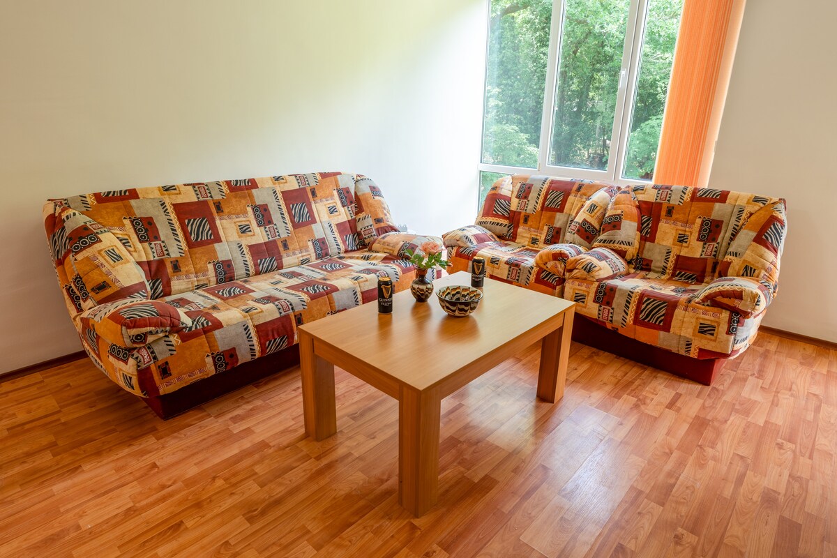 An tearmann foirfe chun do scíth a ligean! Múscailte ag an chirping na n - éan, i gcompord árasán nua - aimseartha, 1.2 km ón trá, ar shiúl ó na hustle agus bustle. Árasán le: Leaba Rí Tolg codlata Cistinéad lánfheistithe Teilifís Chliste Gairdín: Casóg Cathaoireacha tolgacha atá foirfe chun do scíth a ligean faoin spéir ghorm Tar éis lá ag an trá, téann tú ar scor go ciúin, ag baint taitnimh as luí na gréine iontach agus as an bpríobháideacht a thairgeann an gairdín glas. Scíth, compord agus príobháideacht.