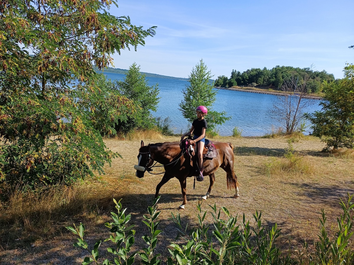 Árasán beag ar an ionad eachaíochta cois locha