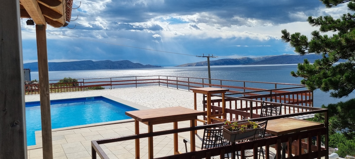 Déan iniúchadh ar pharthas ag Sky Pool Villa in Medveja, an Chróit! Tá linn snámha éigríche théite sa villa sómasach seo a tógadh in 2020, atá suite i measc ghlasra méith, ina bhfuil radhairc iontacha de Mhurascaill Quarnaro. Bain sult as an tobán te, an sabhna, agus an bia beárbaiciú alfresco ar an ardán fairsing agus ar an ngairdín príobháideach. Taobh istigh, bain sult as cistin den scoth, seomra suí teolaí ina bhfuil HDTV 70 orlach, agus dhá sheomra leapa galánta. Geallann gach nóiméad anseo suaimhneas agus cuimhní cinn dodhearmadta. Déan áirithint anois don éalú deiridh!