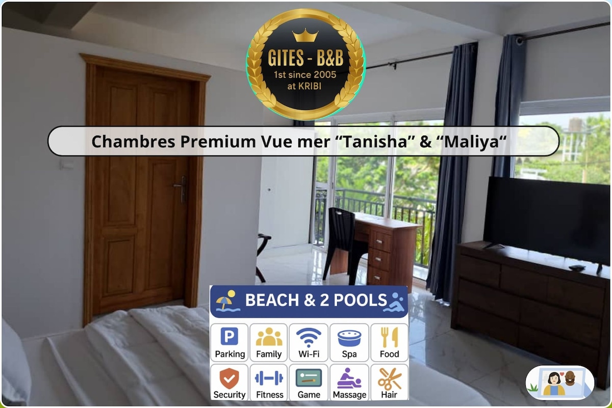 Ár n - árasáin atá suite i mbaile cois farraige Kribi i gCamarún, díreach 10 nóiméad ón trá. An áit iontach chun saoire dhodhearmadta a bheith agat le do theaghlach nó le do chairde. Le dhá sheomra leapa chompordacha agus leaba dhúbailte, cistin fheistithe, seomra suí fairsing, dhá bhalcóin agus páirceáil phríobháideach i ngach ceann acu, beidh gach rud a theastaíonn uait le haghaidh fanacht compordach taitneamhach agat. Déan áirithint anois le haghaidh saoire dhodhearmadta in Kribi.