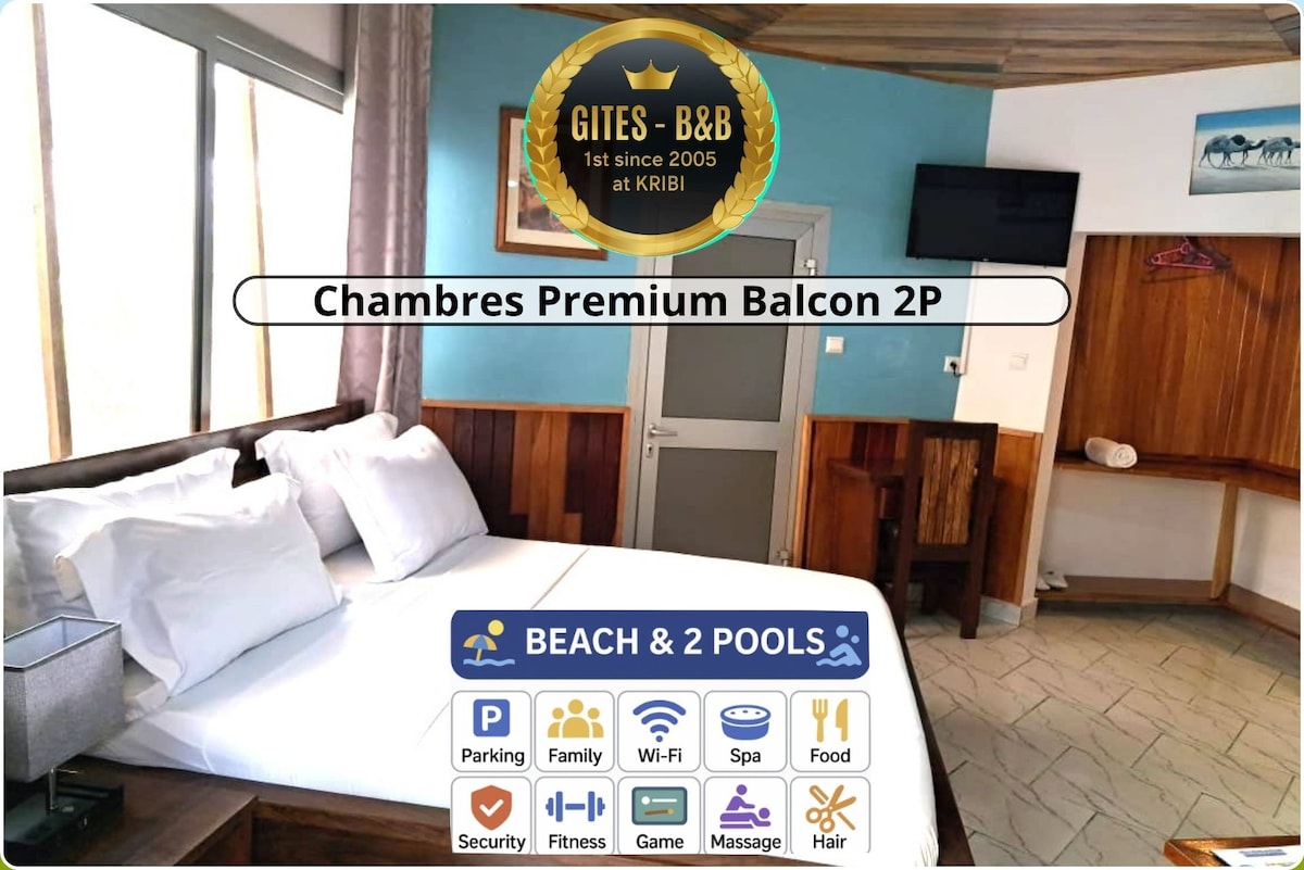 Lonnaithe in Kribi, ÓSTÁN EDIVINCE AN. Tá bialann, linn snámha, beár agus gairdín san IONAD SAOIRE. Le hardán, cuireann an t - óstán 3 réalta seo seomraí aerchóirithe ar fáil le Wi - Fi saor in aisce agus deasc tosaigh 24 uair an chloig. Tá an suíomh faoi fhaireachas i rith an lae agus na hoíche. Tá teilifís scáileáin chomhréidh feistithe ar gach seomra ag an óstán seo.