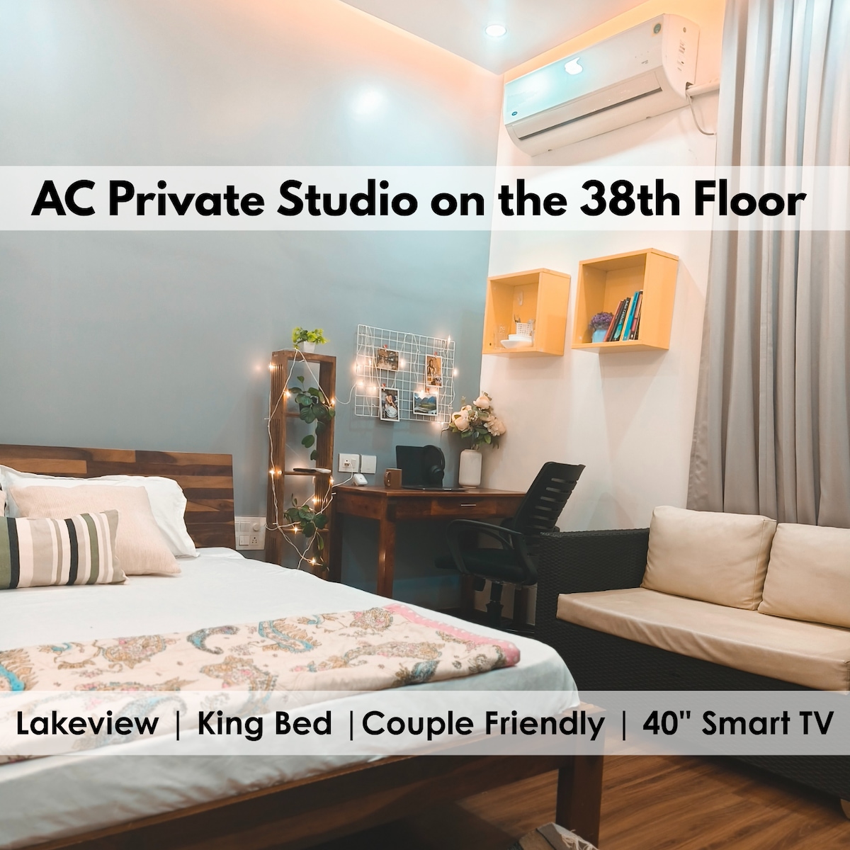 Is seomra príobháideach é seo taobh istigh de Penthouse 4bhk ar an 38ú hurlár le bealach isteach ar leith chuig an seomra, seomra folctha ceangailte, teilifís chliste, Wi - Fi, AC agus spás oibre tiomnaithe. Is féidir an doras a théann chuig an gcuid eile den díonteach a chur faoi ghlas, rud a fhágann gur seomra príobháideach an - teolaí é duit féin. Oiriúnach do lánúineacha, do theaghlach, nó do dhaoine aonair atá ag taisteal don obair. Gréagóir agus sceanra bunúsach atá ar fáil taobh istigh den seomra. Cuirtear earraí leithris ar fáil. Is féidir rochtain a fháil ar pháirceáil saor in aisce, ar shiúlbhealaí, ar chlós súgartha do pháistí agus ar linn snámha.