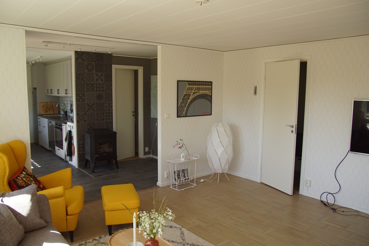 Bíodh an saol simplí agat sa lóistín cúlráideach seo, gar don dúlra, agus suite go lárnach. Breacadh mór príobháideach 300 méadar ó lár na cathrach. Teachín 20 méadar cearnach agus seanteachín. Leapacha compordacha, leaba thoilg do bheirt agus leaba bhuinc. Teach folctha le níochán láimhe. Cithfholcadán de réir méadaithe i dteach eile. Rothair. Hammock. Hammock. Cuisneoir. Sornphlátaí. Déantóirí caife. Gaothrán boird. Raidió. Uisce ar an gcanna. Nighimid do mhiasa saor in aisce. Braillíní agus tuáillí SEK 50 pp. Glanadh SEK 300. Cat lasmuigh "le fáil ar iasacht ". Éin agus fianna, feictear ialtóga agus damh darach freisin.