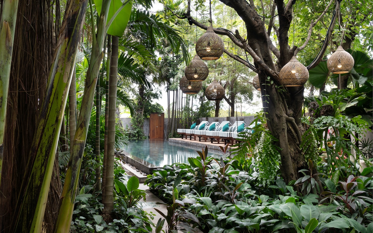 Teach Gairdín Trópaiceach le Linn Snámha & Gairdíní Príobháideacha