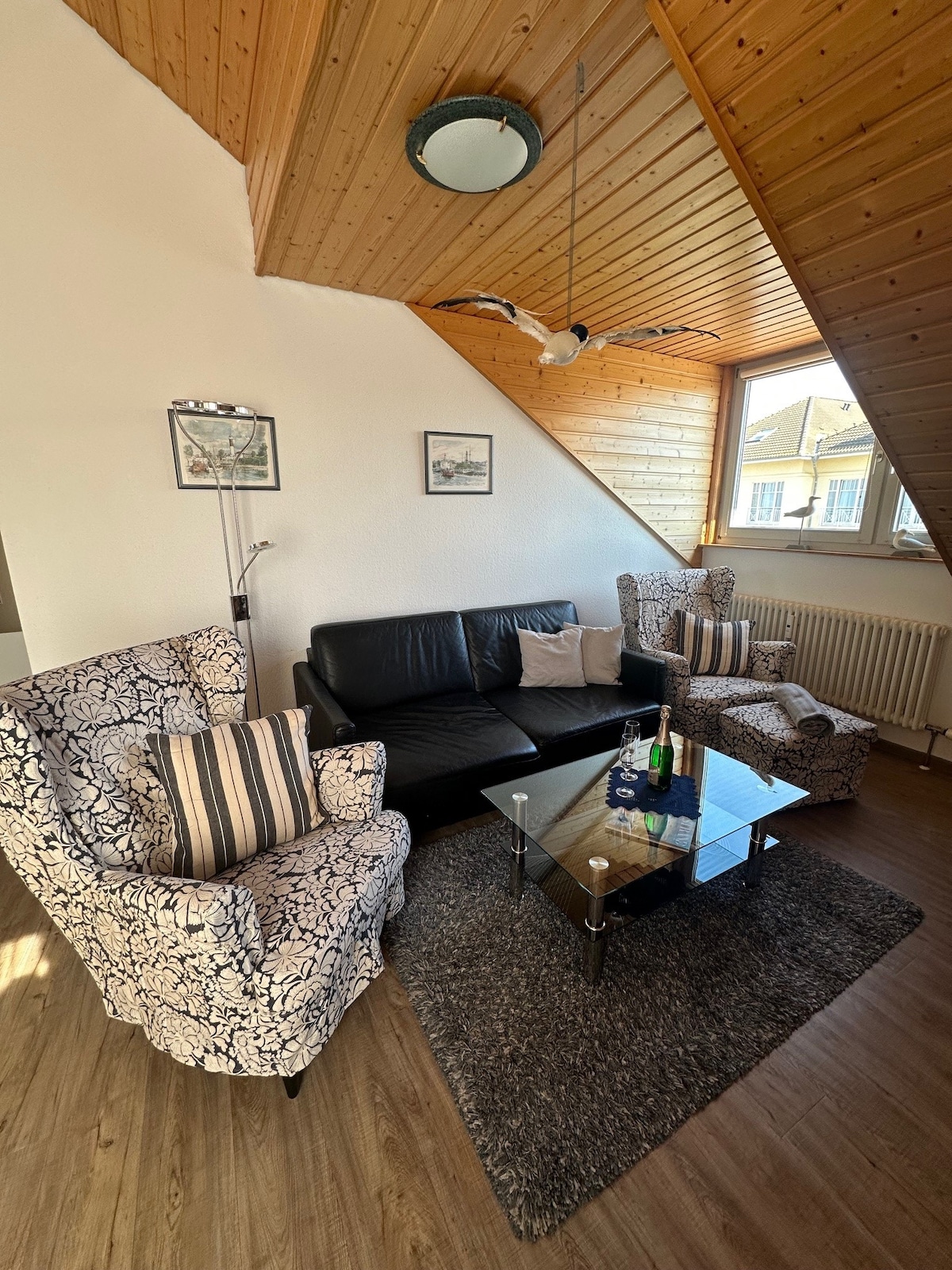 Tá an seomra suite ar an tríú hurlár uachtarach den árastán u. Cuireann sé go leor spáis ar fáil do suas le 5 dhuine ar 62 méadar cearnach. Tá tolg compordach sa limistéar maireachtála mar leaba thoilg dhúbailte (1.50 m x 2.00 m). Tugann an balcóin iartharach radhairc farraige san áireamh. Sunsets. Tá na svuíteanna suite ar an bpromanáid in Börgerende agus ar an bhfarraige. Cuireann an seomra leapa leaba sprionga bosca nua - aimseartha ar fáil (1.80 m x 2.10 m). Tá an chistin oscailte ina bhfuil áit itheacháin chomhtháite feistithe go hiomlán nua - aimseartha. Limistéar spá san áireamh.