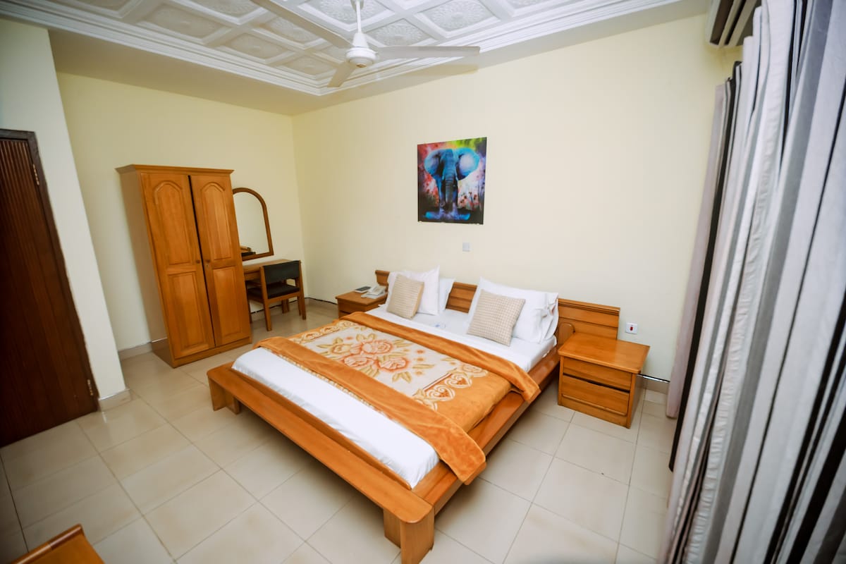 Tá an réadmhaoin 15 sheomra seo scaipthe ar stíl chalet 1.5 acra talún, agus tá a seomra folctha príobháideach iomlán féin agus seomraí balcóin an - mhór agus aerchóiriú i ngach seomra. Tá linn snámha agus Wi - Fi saor in aisce ann. Tá slándáil 24 uair an chloig ann freisin. Cosnaíonn gach seomra $ 55 in aghaidh na hoíche. Tá an suíomh i gcroílár Kumasi (turas 20 nóiméad atá ann ón aerfort agus turas 15 nóiméad ó cheantar gnó lárnach Kumasi). Bíonn BRICFEASTA EORPACH SAOR IN AISCE i ngach seomra
