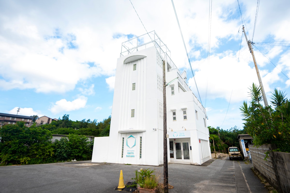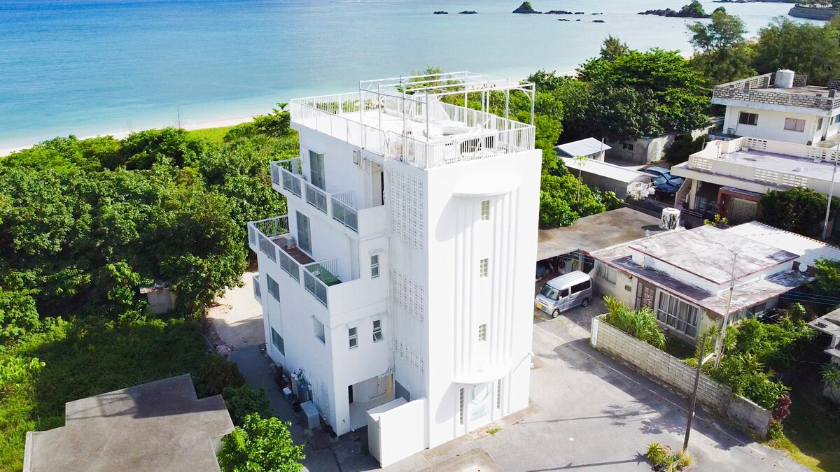 Siúlóid 1 nóiméad go dtí an fharraige, óstán neamhchoitianta in Okinawa, trá phríobháideach shómasach, seomra suite ar an 3ú hurlár