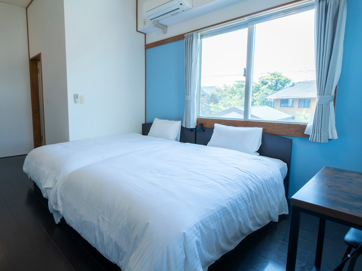 [Deluxe Twin] Fáilte go dtí gach seomra le radharc ar an aigéan!Siúlóid 1 nóiméad chun na farraige [2ú hurlár · Seomra folctha ar fáil]