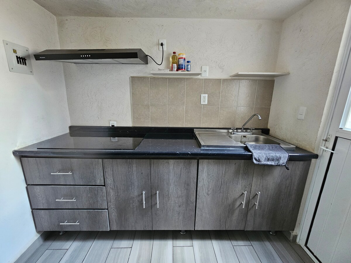 Bain sult as simplíocht an tí chiúin seo agus gar d'Aerfort Idirnáisiúnta Guadalajara (5 nóiméad) i gcarr Glaineacht agus gan aon fhadhbanna leis an sceideal chun aíonna a ghlacadh. Idirlíon, Netflix, Prime Video Tá dhá sheomra leapa ann, a bhfuil a seomra folctha féin ag gach ceann acu, agus tá na leapacha ar mhéid banríona agus na saoráidí riachtanacha ann chun cócaireacht a dhéanamh.