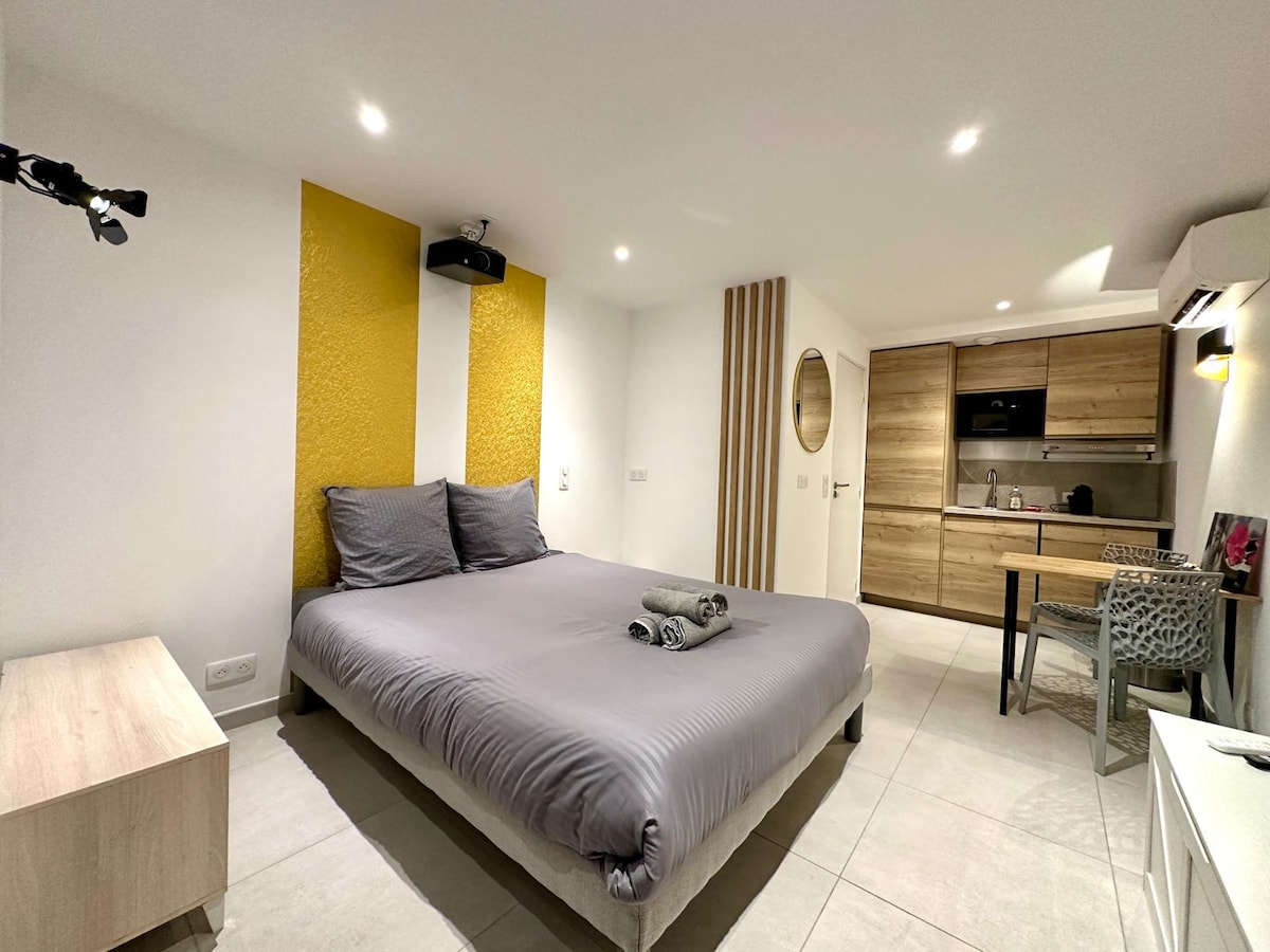 Ag lár Cannes, árasán 32 m2 T2 le gach compord. Cosúil le svuít óstáin, athchóirithe go hiomlán! Go hiontach le haghaidh tréimhsí fanachta gnó: - Siúlóid 7 nóiméad go dtí Palais des Festivals - 2 nóiméad ó stáisiún traenach Ionad Cannes - go leor bialanna agus siopaí (5 nóiméad) Go hiontach do na laethanta saoire: - Siúlóid 7 nóiméad chuig na tránna - dearcadh ciúin agus glas leis na buntáistí a bhaineann le bheith i lár agus ag déanamh gach rud de shiúl na gcos I Ard - Mhéara deas SPÁS páirceála príobháideach Áit chónaithe shábháilte shlán