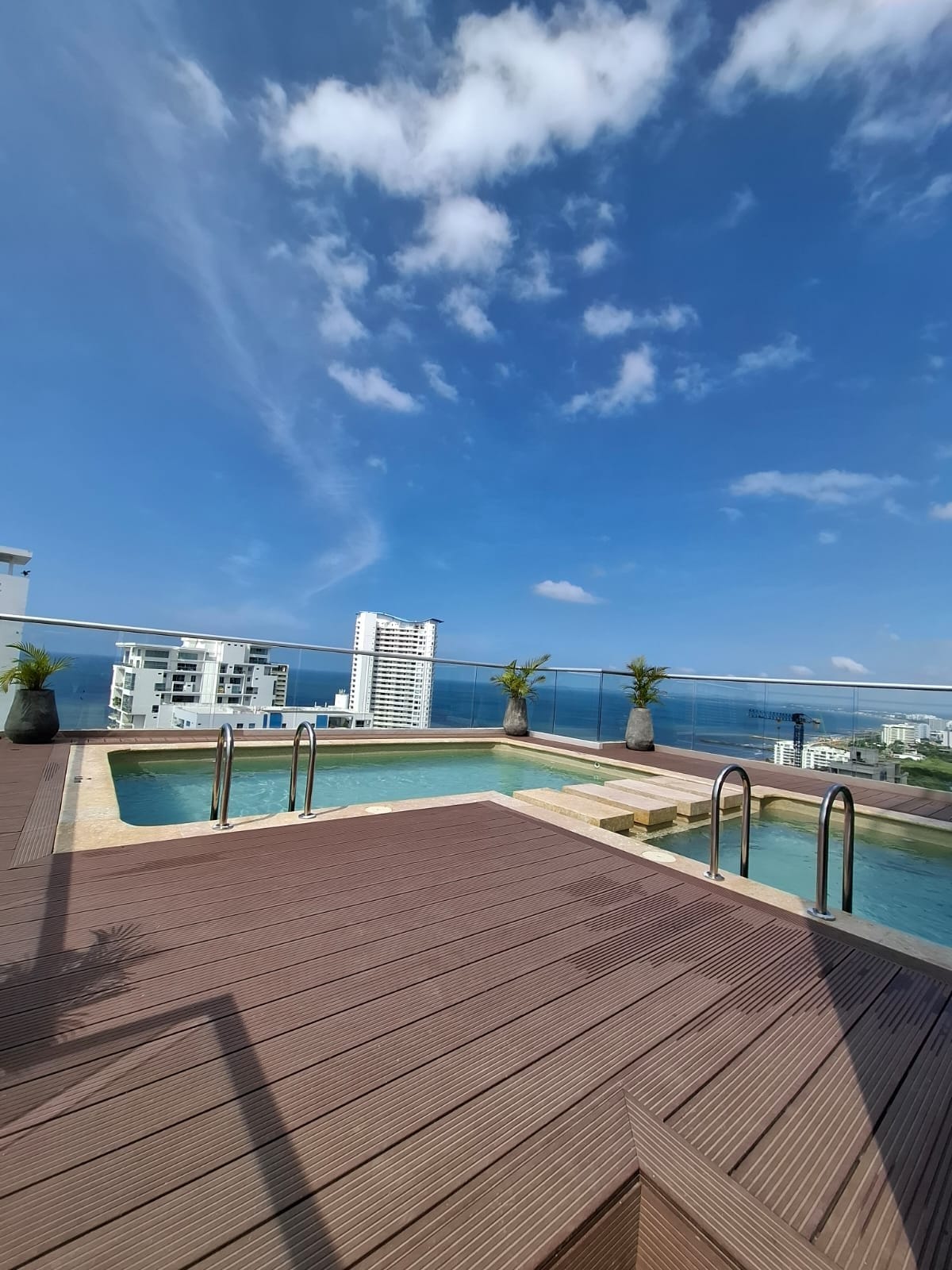 Tá an t - árasán maisithe go blasta le teagmháil Cholómach, bríomhar agus úr. Tá balcóin álainn ann inar féidir leat taitneamh a bhaint as radhairc ar an bhfarraige agus solas na gréine. Tá sé feistithe go hiomlán le haghaidh tréimhsí fanachta gearra agus fada araon, le 1 seomra leapa agus 2 sheomra folctha, rud a fhágann go bhfuil sé foirfe do lánúineacha. Tá linn snámha lasmuigh, jacuzzi agus giomnáisiam sa limistéar sóisialta. Tá an t - árasán nua, nua - aimseartha, agus níl sé ach ar shiúl ó thránna Bocagrande agus Castillogrande, agus níl sé ach 10 nóiméad ón lár stairiúil.