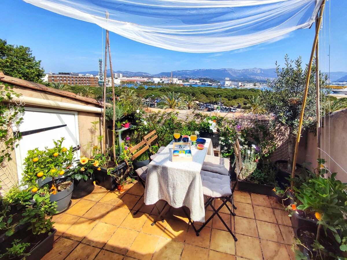 Villa tí sraithe 100m2 ailtirí, timpeallaithe ag ardáin mhóra le radhairc iontacha ar an aigéan agus ar an gcathair, timpeallaithe ag crainn ghiúise agus crainn olóige. 10 nóiméad ó lár bhaile Toulon agus na tránna. Tá an áit seo foirfe le haghaidh fanacht suaimhneach sa deisceart, suite go hidéalach chun na nithe is díol spéise is fearr sa réigiún a iniúchadh. Tá Stephanie agus do theaghlach ag tnúth le fáilte a chur romhat ansin agus seoda uile an réigiúin a thabhairt duit.