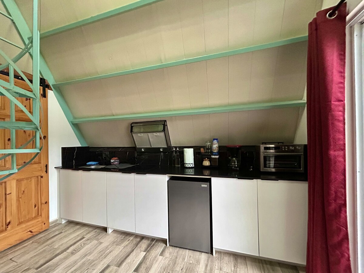 An - nua - aimseartha agus fairsing. Tá a ardán féin sa seomra le bealach isteach príobháideach! Radharc álainn ar an lochán le Bolcán Baru mar chúlra. An áit fhoirfe chun taitneamh a bhaint as do chupán caife ar maidin ag éisteacht le héin. Tá do chuisneoir príobháideach féin agat, barr sorn, oigheann beag ar bharr an chuntair, micreathonnán agus déantóir caife i do shvuít! Chomh maith leis na bunrudaí go léir ( caife, salann, piobar, ola olóige, srl), potaí agus pannaí. Tar agus bain sult as scíth a ligean san áit seo chomh rómánsúil! Tá idirlíon ardluais againn freisin!