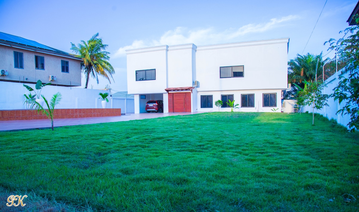 Téigh siar agus lig do scíth sa spás socair galánta seo. Níl ort ach Álainn agus síochánta. 5 nóiméad sa charr ó Aerfort Idirnáisiúnta Kotoka. Dhá sheomra leapa lánfheistithe ina bhfuil spás oifige príobháideach amháin