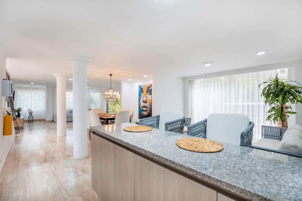 Faigh blaiseadh d'eispéireas eisiach Scarlett Sunset, teach tuaithe sómasach atá deartha dóibh siúd atá ag lorg príobháideachta, stíle agus cuimhní speisialta. Lonnaithe i gceantar eisiach Envigado, foirfe do theagmhálacha speisialta, do cheiliúradh pearsanta nó do shaoirí gearra le cairde i suíomh nádúrtha, galánta agus curtha in áirithe go hiomlán. Bain sult as áiteanna móra glasa, jacuzzi, limistéar beárbaiciú, fuaim timpeallaithe, páirceáil agus radharc iontach a fhágann nach féidir dearmad a dhéanamh ar gach fanacht.