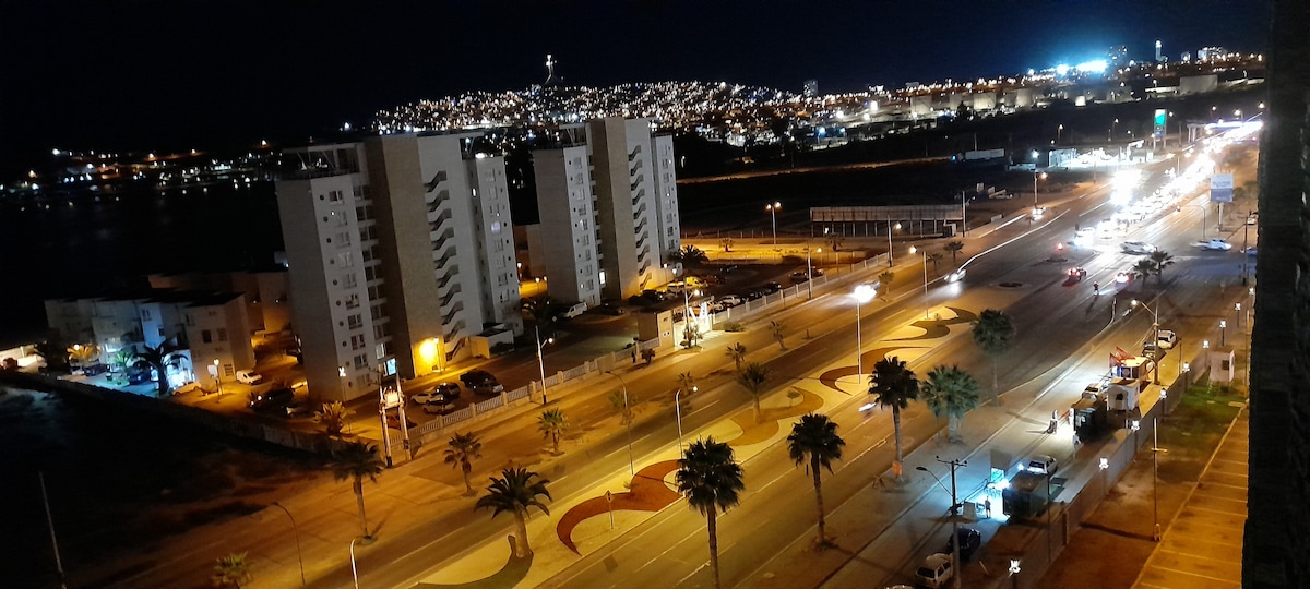 Teacht 2 sheomra leapa agus 2 árasán folctha in Condo Alta Mar, líne tosaigh Avenida Costanera, in aice le calafort Coquimbo agus críochfort iascaireachta, gar do bhusanna, ionaid gastranómachais agus ollmhargaí, le radhairc ar an aigéan agus 2 bhloc ón Vivo Coquimbo Mall. Tá 2 ardaitheoir sa bhloc árasán, linn snámha, páirceáil ar an gcéad urlár, seomra feithimh, cluichí do pháistí, linn snámha, limistéir ghlasa, concierge 24 uair an chloig suite ar an 13ú urlár.