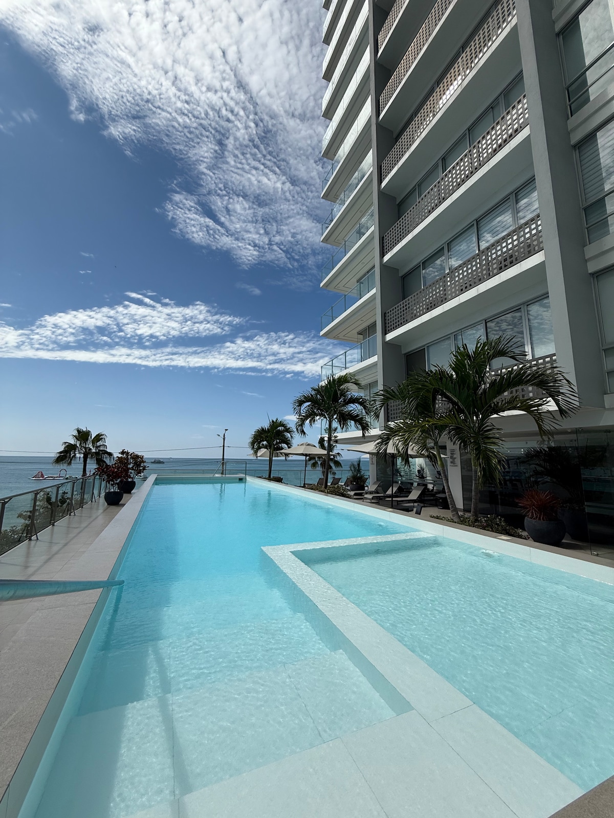 ACOGEDOR DEPARTAMENTO FRENTE AL MAR! Departamento ubicado en el 5to piso del condominio “Torre Naútica”, situado en el malecón de Puerto Lucía, cuenta con 3 dormitorios con A/C Split, 2 baños completos, agua caliente, cocina totalmente equipada y abierta, sala con área de cafetería y un amplio balcón frente al mar donde podrás disfrutar de los mejores atardeceres ! Único edificio con salida directa a la playa! Las fotos saldrán espectaculares!!