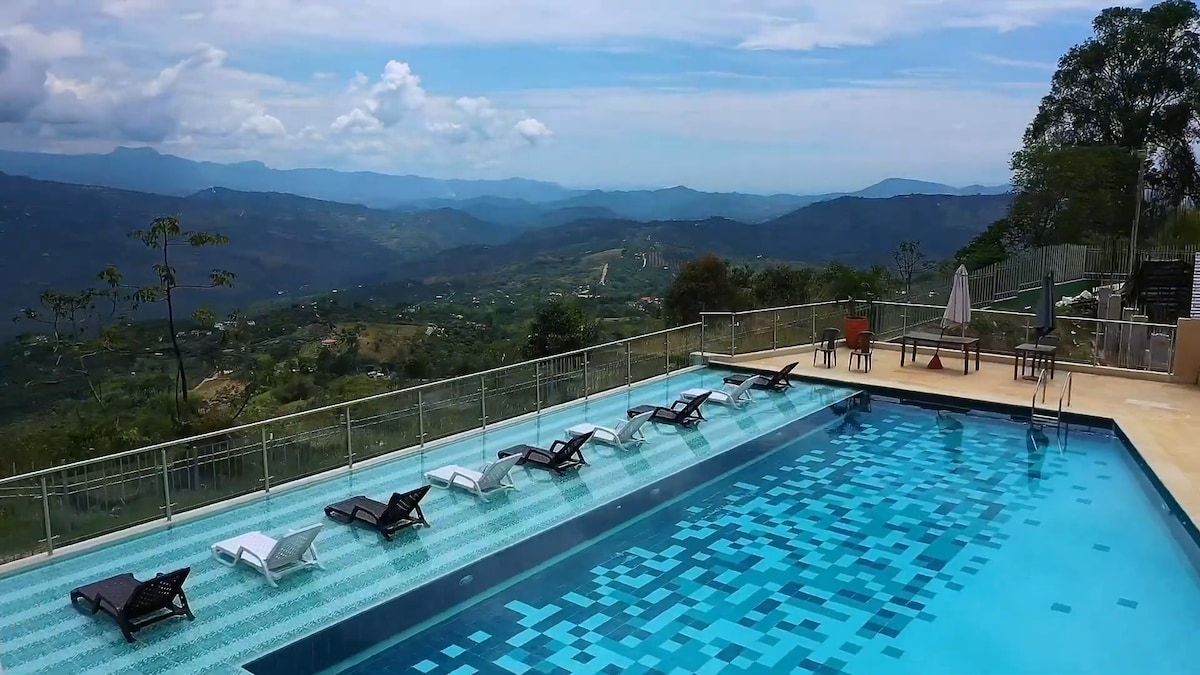 Déan iniúchadh ar do thearmann in Anapoima! Árasán álainn tuaithe ina bhfuil 2 sheomra leapa, seomra suí, cistin, balcóin agus gairdín. Tá leaba thoilg sa seomra suí ar féidir leis freastal ar chúigiú aoi, rud a fhágann go mbainfidh gach duine taitneamh as an spás gan imní. Bain sult as an linn snámha, beárbaiciú, both le cistinéad agus páirceáil saor in aisce. Lonnaithe 1 nóiméad ó San Antonio agus 7 nóiméad ó lár na cathrach, is áit iontach é chun do scíth a ligean, ceangal a dhéanamh leis an dúlra agus eispéireas dodhearmadta a bheith agat.
