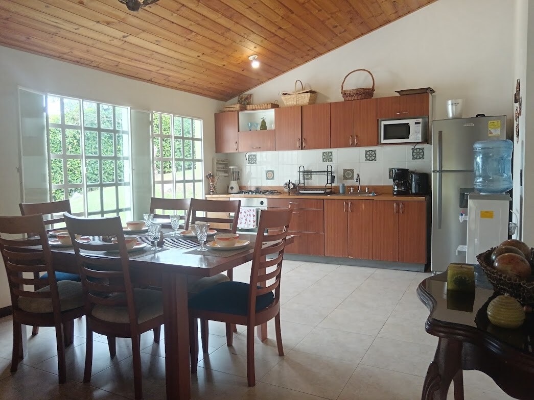 Teach álainn in árasán eisiach le faireachas 24 uair an chloig. Bain sult as radhairc áille, ceol na n-éan agus aer úr agus tú ag roinnt cuimhní cinn dodhearmadta le do theaghlach agus le do chairde. Aerchóiriú Tá fuinneamh na gréine inár dteach, rud a chinntíonn leictreachas le linn báisteach throm a d'fhéadfadh a bheith ina chúis le briseadh cumhachta sa cheantar. Is féidir leat gníomhaíochtaí lasmuigh a dhéanamh amhail siúlóidí éiceolaíocha, rothaíocht, snámh, beárbaiciú nó asados in oigheann láibe Tá an tacaíocht intíre breise.