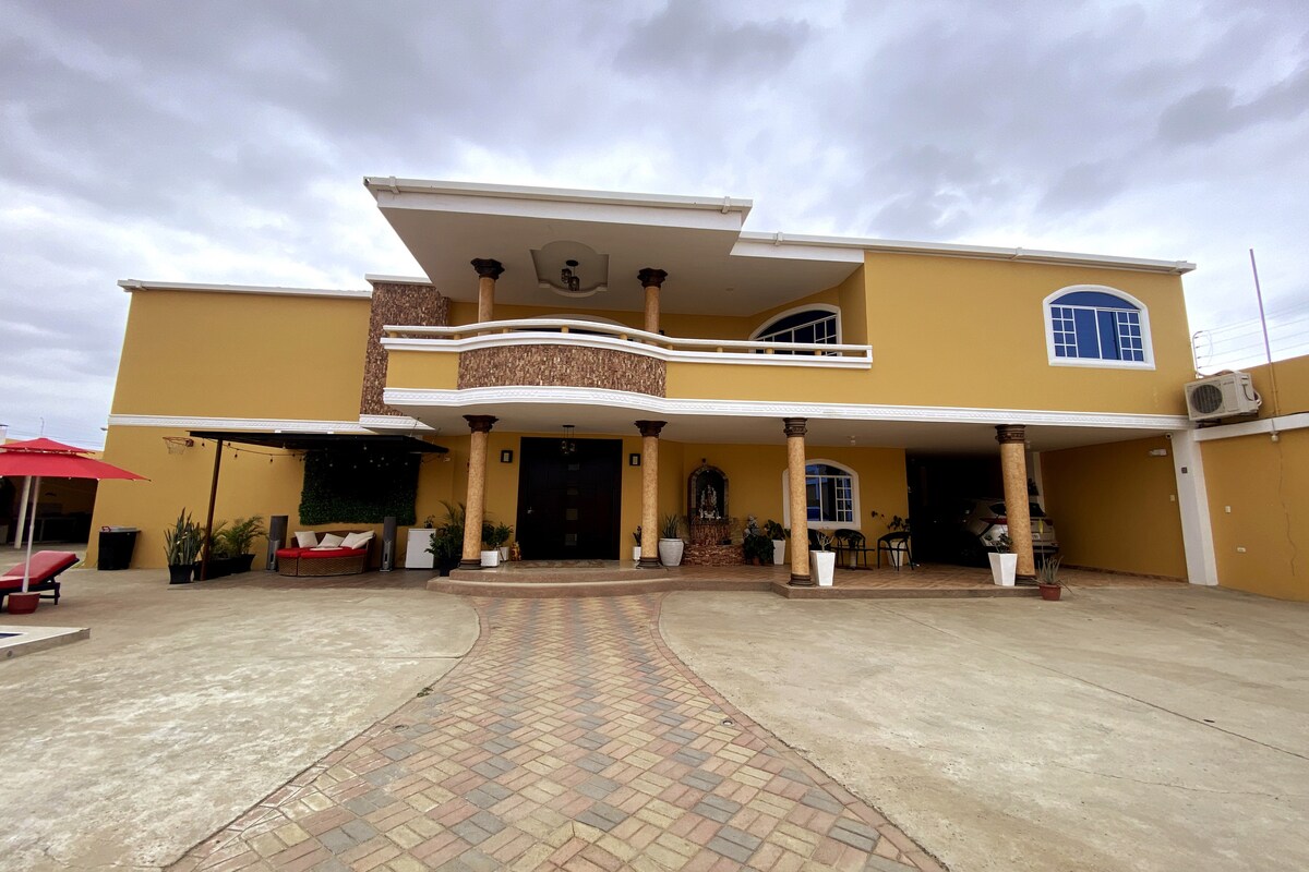 Scaoil le d'ábhair imní san áit scíthe fhairsing shuaimhneach seo. Suite i gceantar tuaithe Manta ina bhfuil aeráid thais bhlasta. Foirfe do ghrúpaí teaghlaigh nó cairde a bhfuil dúil mhór acu sa dúlra, gan compord agus nuachóras a fhágáil ar lár. Tá gach rud a theastaíonn uait le haghaidh fanacht foirfe sa teach sómasach seo a bhfuil spás ann do 14 👤. Tá linn snámha, jacuzzi, cábáin scíthe, oigheann adhmaid, áiteanna do pháistí, agus roinnt nithe eile ar fáil san áit iontach seo.