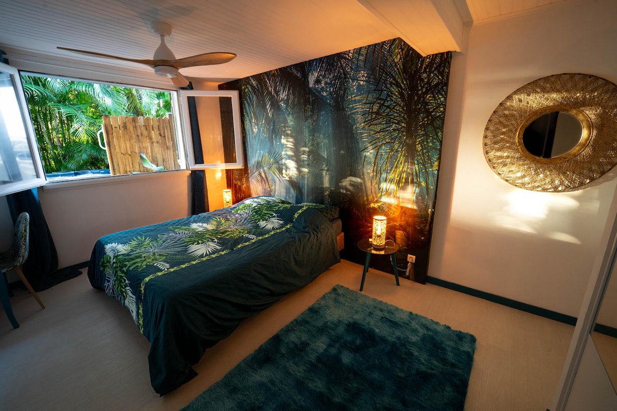 Welcome to Ti Kaz Colibri 🌺 “4-star accommodation” A 60 m² T2 with a private jacuzzi and peaceful garden in the heights of La Possession. Perfect for a romantic weekend, a relaxing break, or remote work, this cozy retreat inspired by the hummingbird is a serene haven in the heart of Réunion Island. 💦🏡 Enjoy a fully equipped apartment with a cozy living room, comfortable bedroom, and an outdoor space perfect for relaxation.