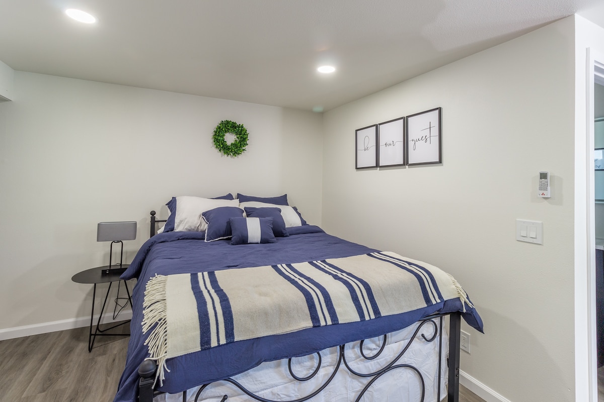 Is teach aíochta galánta é seo a tógadh ar chúl ár dteach. Táimid suite i gcomharsanacht shíochánta fho - uirbeach. Tá leaba shingil, seomra folctha príobháideach, bealach isteach féin, spás páirceála ainmnithe, oigheann micreathonnach, cuisneoir beag, déantóir caife, pláta te 2 - dóire, iarann/clár iarnála; téitheoir agus aerchóiritheoir. Tá paitió ann freisin ar féidir leat suí chun taitneamh a bhaint as aimsir úr California. Tabhair faoi deara, le do thoil, go n - iarraimid ar gach aoi ID rialtais a chur isteach sula seiceálfaidh siad isteach.