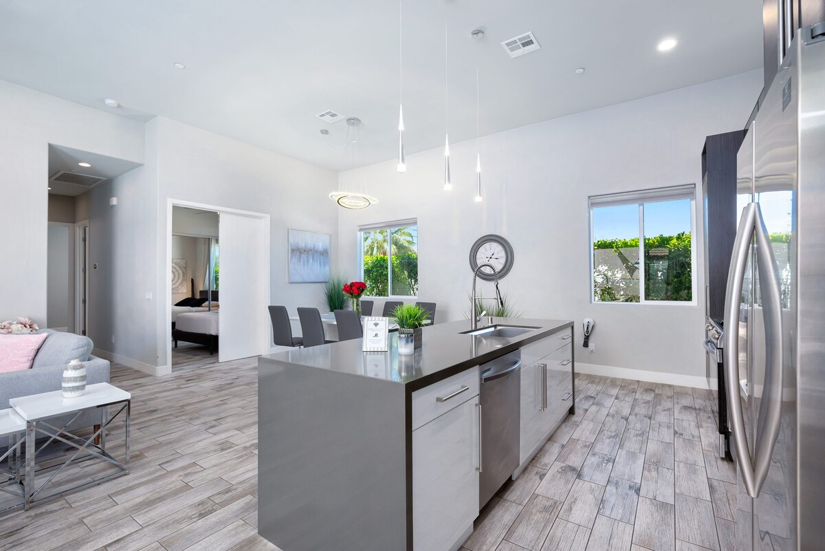Éalaigh chuig d'óasais fhásach phríobháideach—áit a gcruthaíonn solas na gréine, crainn phailme agus radhairc shuaimhneacha ar an ngalfchúrsa saoire ghearr fhoirfe in Indio. 💦 Linn snámha sáile agus téamh spá saor in aisce 🎮 Seomra cluichí: bord púil, ping phong, stuara & teilifís chliste 🛏️ Codladh 10: 2 Leaba Rí, 1 Leaba Bhanríona, Leaba Bhanríona+Buinc 🍳 Cistin an chócaire + beár caife 🔥 Teallach, BBQ, bia amuigh faoin aer & lounge 🎾 Leadóg, pickleball agus ionad aclaíochta (4 aoi) 🚗 In aice le Indian Wells, La Quinta & Joshua Tree