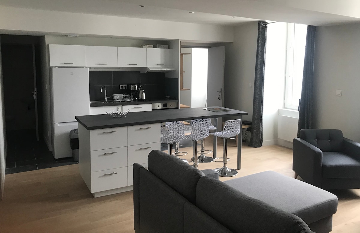 Fáilte go dtí ár n - árasán nua - aimseartha in La Rochelle, díreach 10 nóiméad ó lár na cathrach! Lonnaithe i dteach beag ciúin ina bhfuil gairdín, is féidir leis suas le 4 aoi a óstáil. Seomra suí geal + leaba thoilg (áit chodlata 2) Cistin lánfheistithe Seomra leapa teolaí le haghaidh oícheanta síochánta Cuireadh braillíní agus tuáillí ar fáil le haghaidh fanacht gan imní Páirceáil sráide saor in aisce 50 -200 méadar ar shiúl Déan iniúchadh ar La Rochelle, a mhargaí, a bhialanna agus a vibe uathúil! Ag tnúth le tú a óstáil, Matthieu