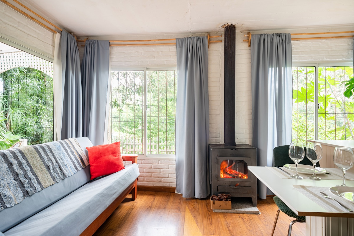 Teachín teolaí i gcoill Punta Ballena. Ideal chun dul ar saoire agus scíth a ligean i dtimpeallacht nádúrtha agus an - síochánta. Céimeanna ó Arboretum Lussich, atá oiriúnach do shiúlóidí, siúlóidí agus taitneamh a bhaint as caife le císte blasta La Checa. Miontuairiscí ó Solanas Beach, Tío Tom, Las Grutas, Chihuahua. Tá tolgairí gréine agus scáth fearthainne againn le cosaint uv. Sa gheimhreadh beimid ag fanacht leat leis an Fueguito Engido. Tá an teach lánfheistithe chun iad a chur ar a gcompord sa bhaile.