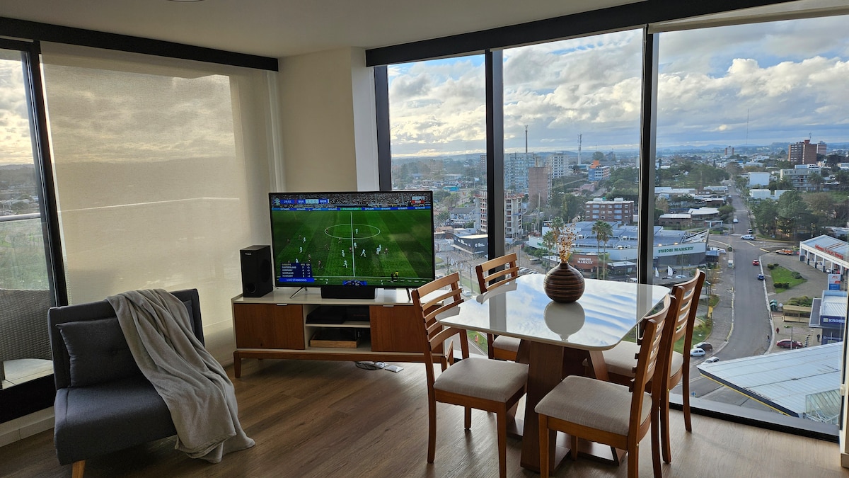 Bain sult as le do theaghlach ó cheann ceann na bliana. Árasán nua - aimseartha in Punta del Este, le hacmhainn do 4 dhuine, 9 mbloc ó Playa Mansa, ag tógáil le saoráidí. Lonnaithe ar an 14ú hurlár, treoshuíomh an oirthuaiscirt, go leor solais nádúrtha, beidh deis agat machnamh a dhéanamh ar luí na gréine difriúil gach lá. Suaimhneas, compord agus radhairc iontacha den fharraige agus de na sábha. Tá an foirgneamh suite os cionn Atlántico Shopping, áit ar féidir leat taitneamh a bhaint as an bplás bia, na cluichí, na siopaí agus na hamharclanna scannán.