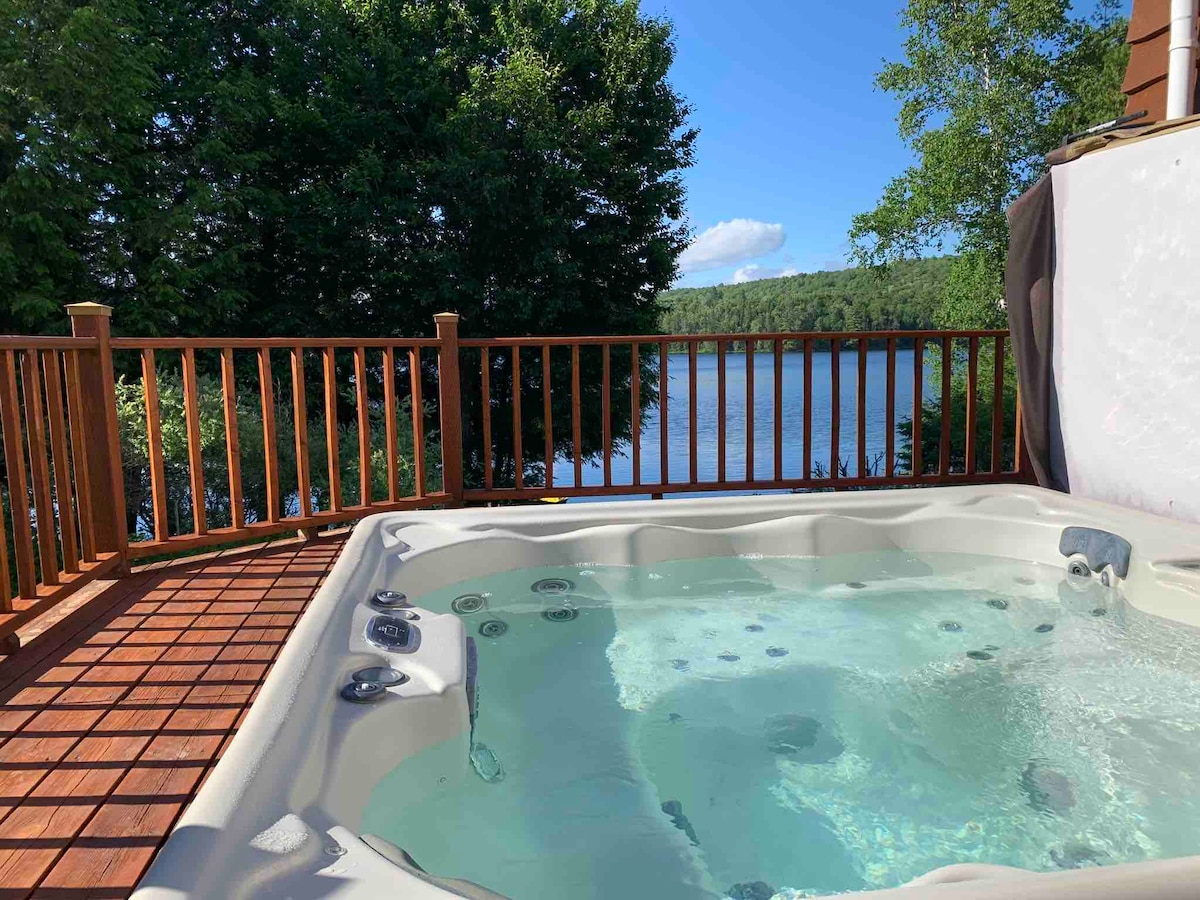 Chalet rustique/chic décoré avec goût. Entièrement équipé pour passer un magnifique séjour dans cet havre de paix. Plusieurs jeux de société à votre disposition, télé intelligente, ainsi que 2 kayaks et 1 paddleboard pour profiter du lac l'été. Un poêle à bois à l'intérieur ainsi qu'un foyer à l'extérieur avec chaises de type adirondacks, bois à votre disposition. Grande terrasse et jaccuzi vous offrant une vue incroyable sur le lac désert. Accès partagé au lac. Cafetière Nespresso.