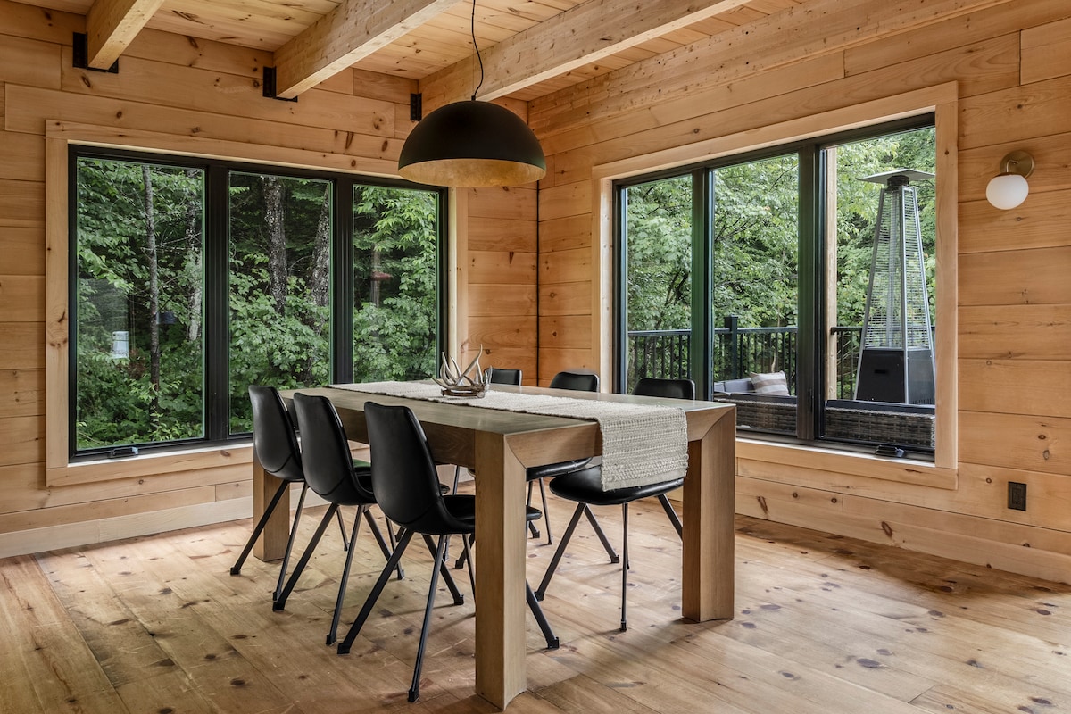 Sealla i stíl Lochlannach in Lac - Supérieur, QC. CITQ# 300328 Lonnaithe 300 méadar ón Loch Superior álainn, is meascán foirfe den dúlra é an Spahaus seo, mar gheall ar a shuíomh san fhoraois, agus an nua - aoiseacht, lena spásanna áille oscailte faoi dhíon, Jacuzzi lasmuigh, sabhna faoi dhíon agus go leor eile! - Lonnaithe 7 nóiméad ó ionad sciála Mont - Tremblant Versant Nord. - Lonnaithe 20 nóiméad ó shráidbhaile Mont - Tremblant.
